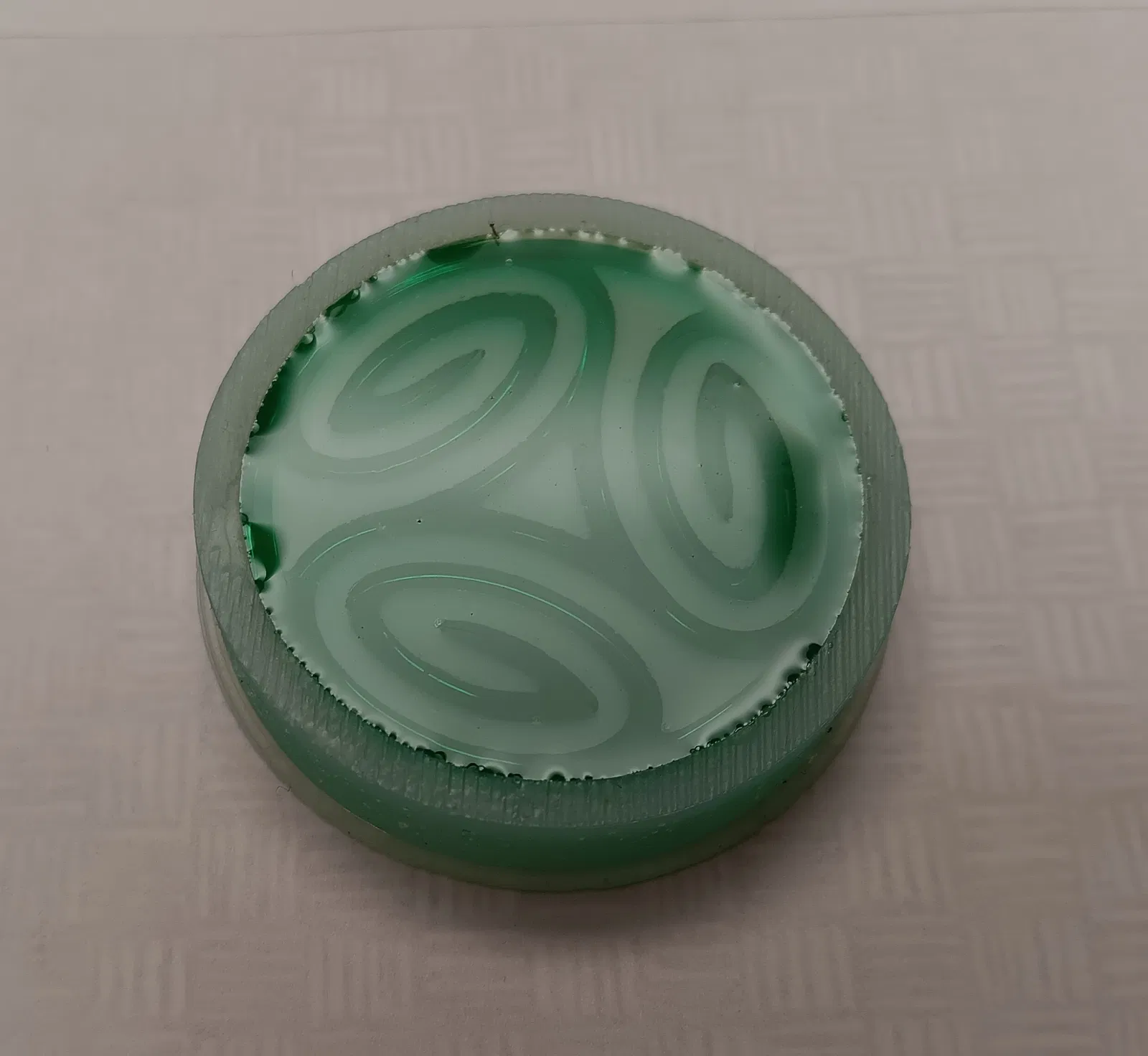 - Tùy chọn: Bạn có thể đúc thêm một phần đế vừa khít với mảnh này để đổ đầy vào bên trong các vòng xoắn nếu muốn sản phẩm đặc hoàn toàn. Hãy dùng nhựa trong suốt giống như khi làm lớp trên.