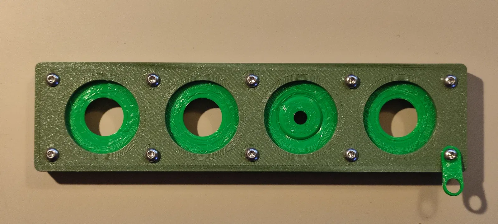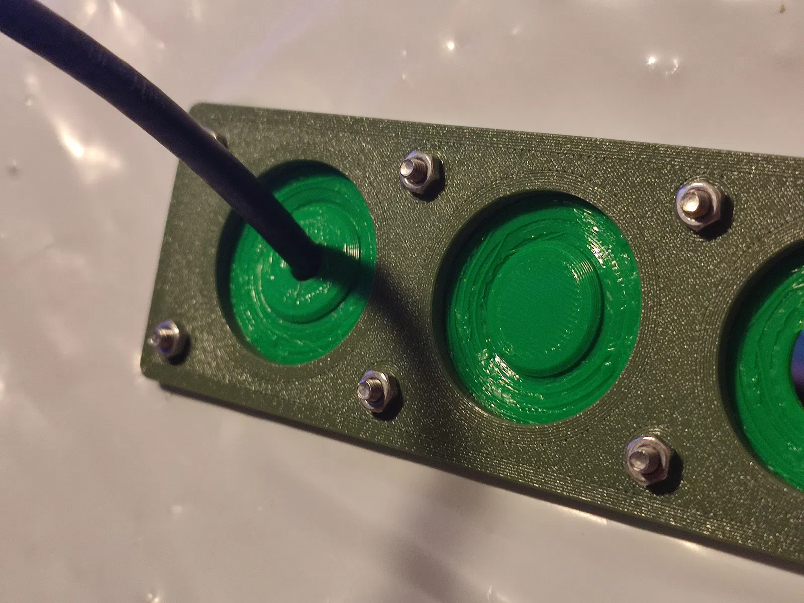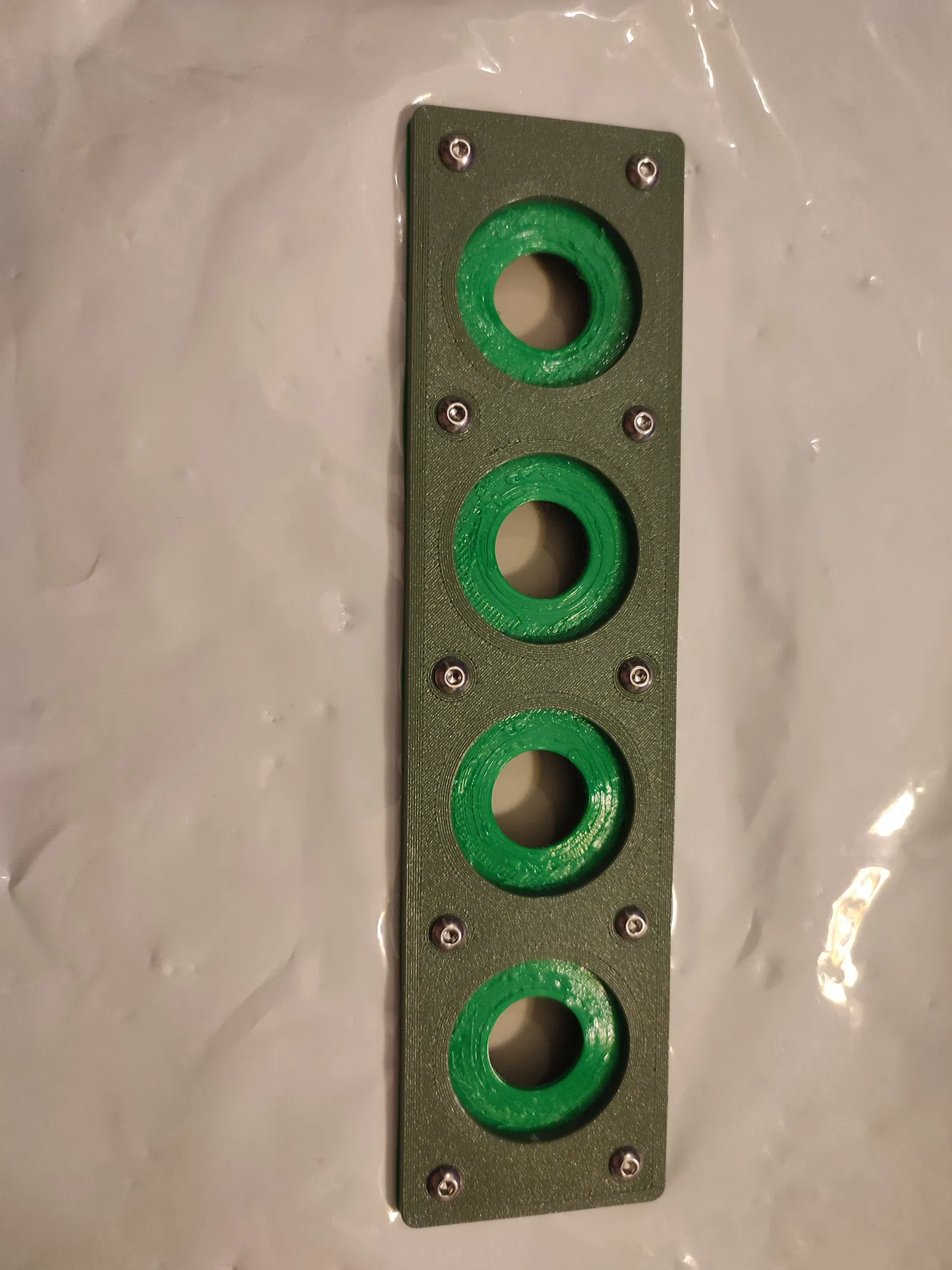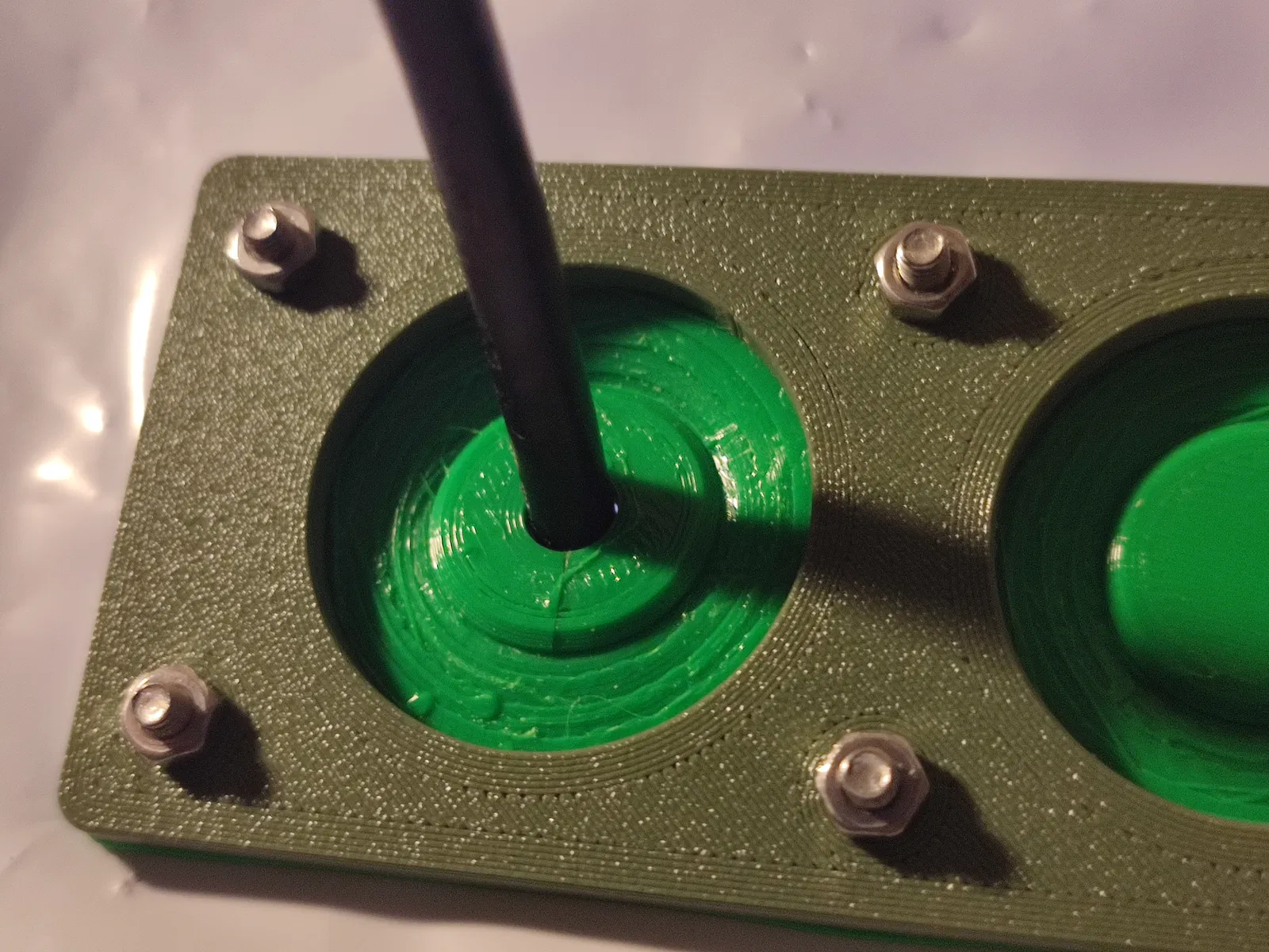Đầu nối cáp cho lều. Bạn cũng có thể dùng cho các trường hợp khác. Các tấm kẹp được giữ cố định nhờ ma sát giữa nhựa TPU và vải lều. Tất cả được liên kết bằng 10 ốc M3 dài 12mm. Độ dày của chi tiết TPU có thể dễ dàng điều chỉnh trong phần mềm slicer để tăng độ cứng cáp. Bạn cần điều chỉnh kích thước của các nút bịt và gioăng cao su tương ứng. Các gioăng cao su có thể dùng dao sắc rạch mở để luồn vào cáp đã bấm đầu sẵn. Gioăng và nút bịt đều có lỗ nhỏ để bạn buộc thêm dây, xích hoặc paracord vào lỗ khoen, giúp tránh bị thất lạc khi tháo rời. Nguyên liệu thử nghiệm: TPU 90A, PETG, ốc và tán M3.