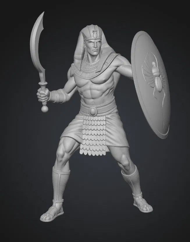 Bạn đang tìm kiếm một mô hình nhân vật lịch sử đầy uy phong để bổ sung vào bộ sưu tập mô hình 3D của mình? Đây là mẫu thiết kế tái hiện chân thực hình ảnh của một chiến binh Ai Cập cổ đại với cơ bắp cuồn cuộn, tư thế sẵn sàng chiến đấu đầy mạnh mẽ. Điểm nhấn của mô hình nằm ở thanh kiếm hình lưỡi liềm đặc trưng được gọi là Khopesh cùng chiếc khiên lớn có chạm khắc biểu tượng bọ hung linh thiêng, một chi tiết văn hóa rất đặc sắc của vùng đất Ai Cập huyền bí.