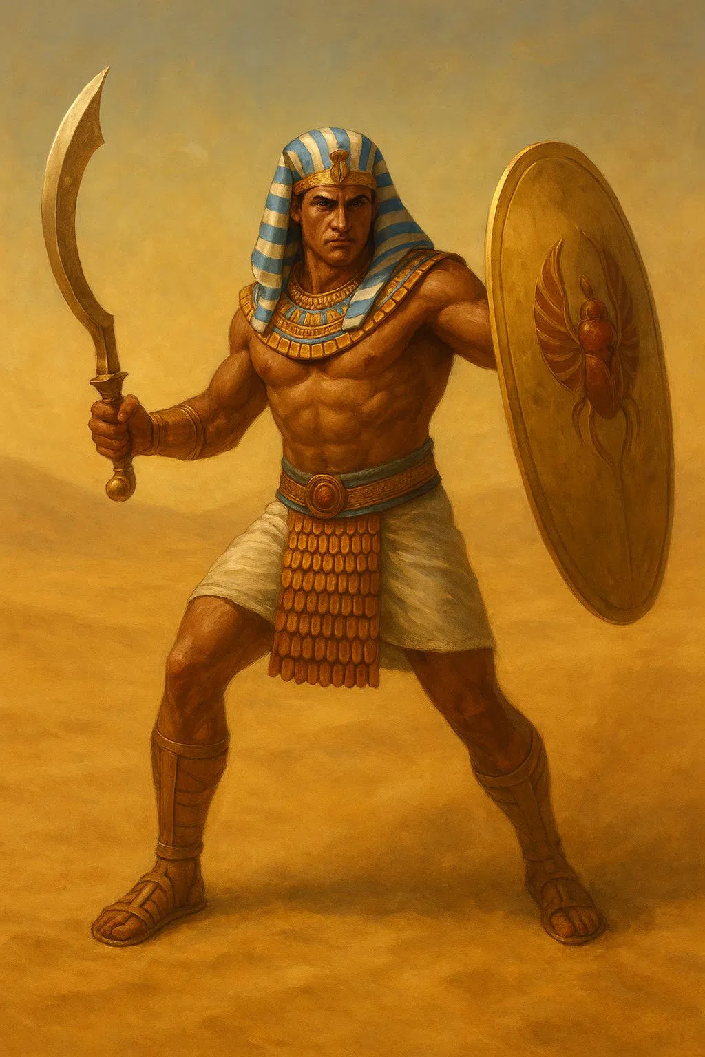Mô hình 3D chiến binh Ai Cập cổ đại cùng kiếm Khopesh và khiên