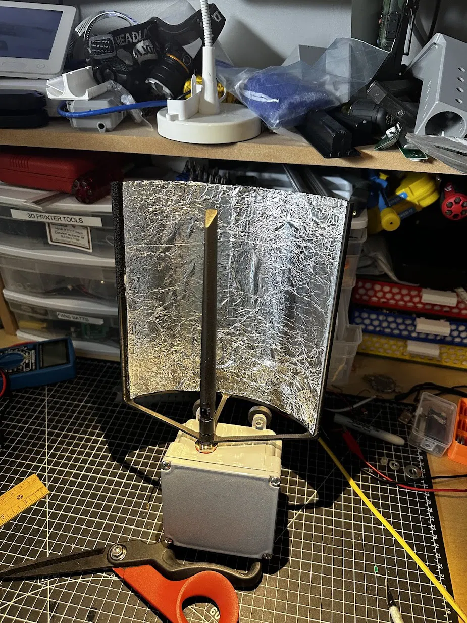 Mẫu gương phản xạ Meshtastic đơn giản và hiệu quả. Các bạn nhớ in kèm brim vì nó rất dễ bị bong, và dùng keo dán giấy để dán giấy bạc (aluminum foil) lên bề mặt phía trước nhé.