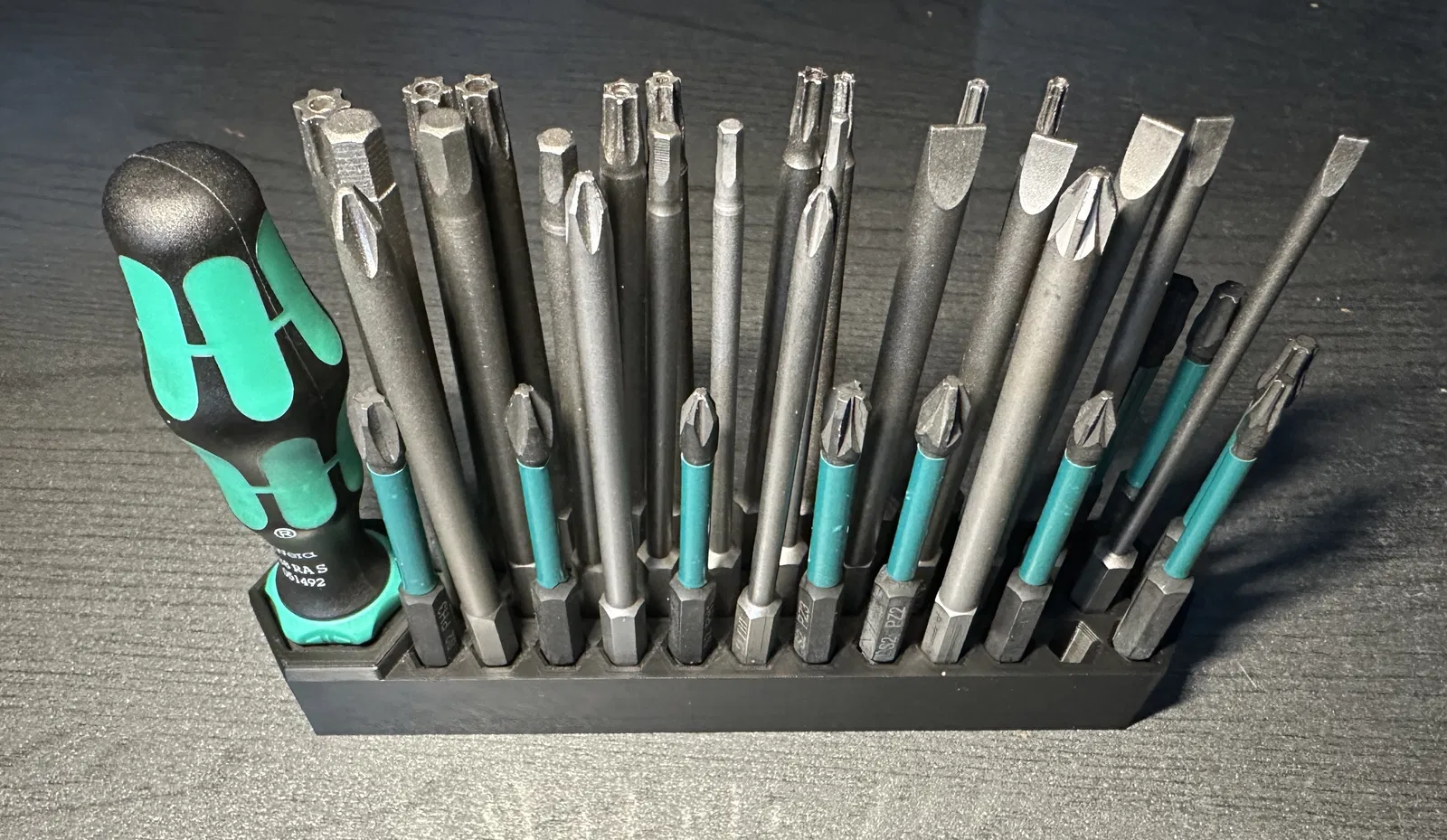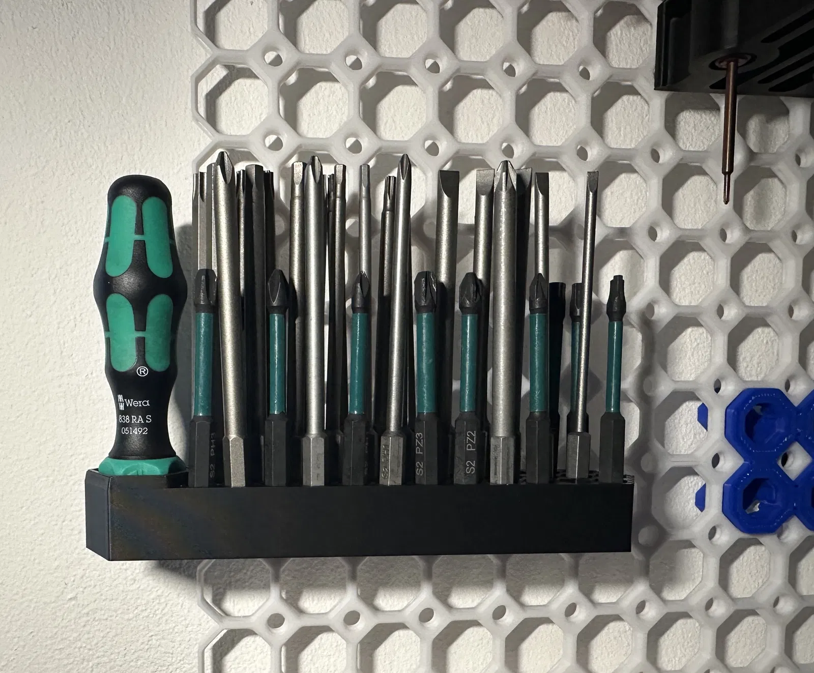 Mẫu giá đỡ được cải tiến dựa trên thiết kế Multiboard, hỗ trợ chứa 36 đầu vít lục giác và có thêm hốc cắm sâu cho tay cầm Wera 838, giúp việc lưu trữ và mang đi linh hoạt hơn.