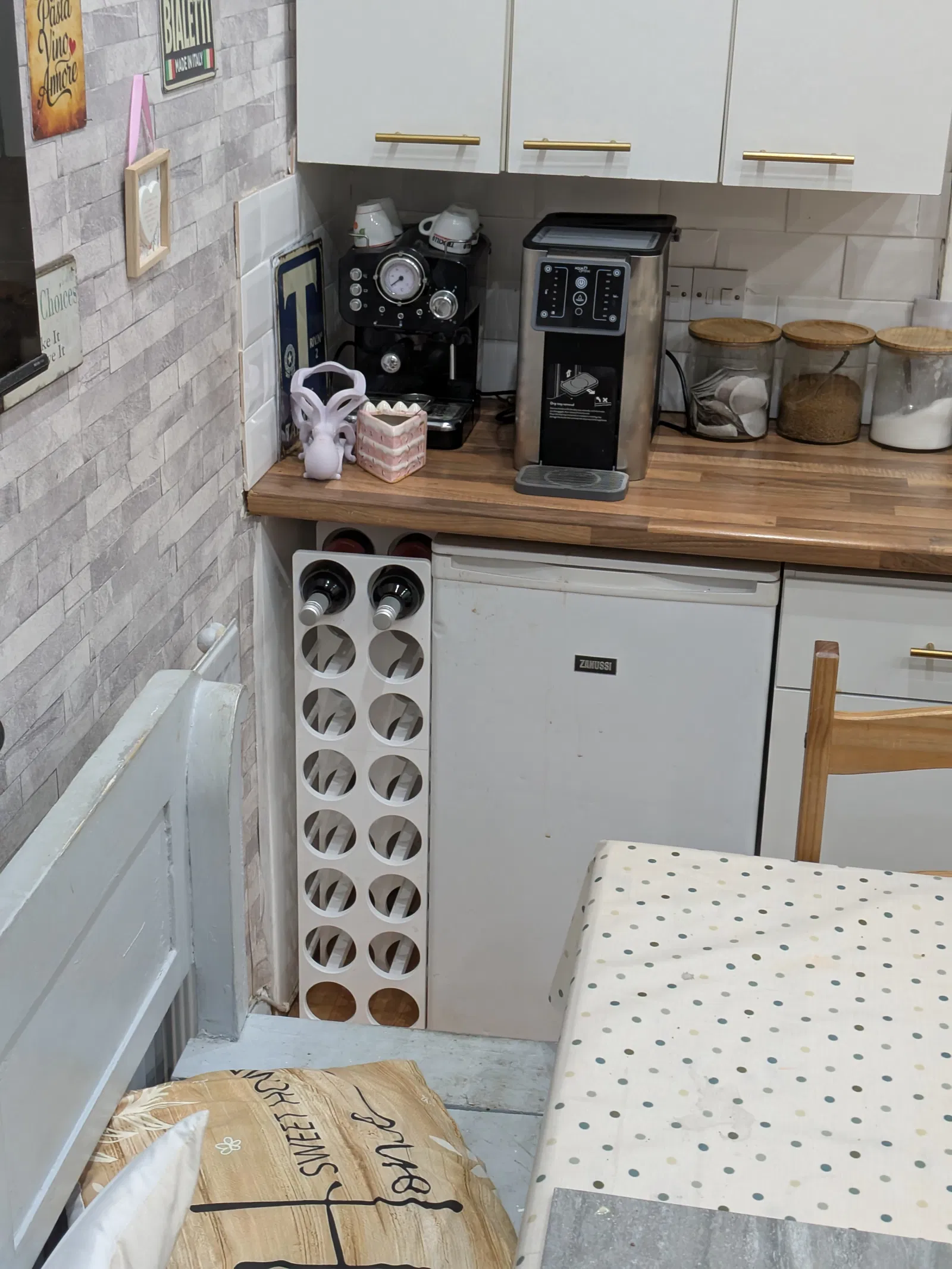Mình thiết kế mẫu kệ rượu 2x8 này để lấp đầy khoảng trống nhỏ trong bếp. Thiết kế có kèm file gốc và các file đã cắt sẵn cho máy in 300mm+, giúp bạn dễ dàng lắp ghép theo ý muốn. Hy vọng mẫu kệ này sẽ hữu ích cho căn bếp của bạn.
