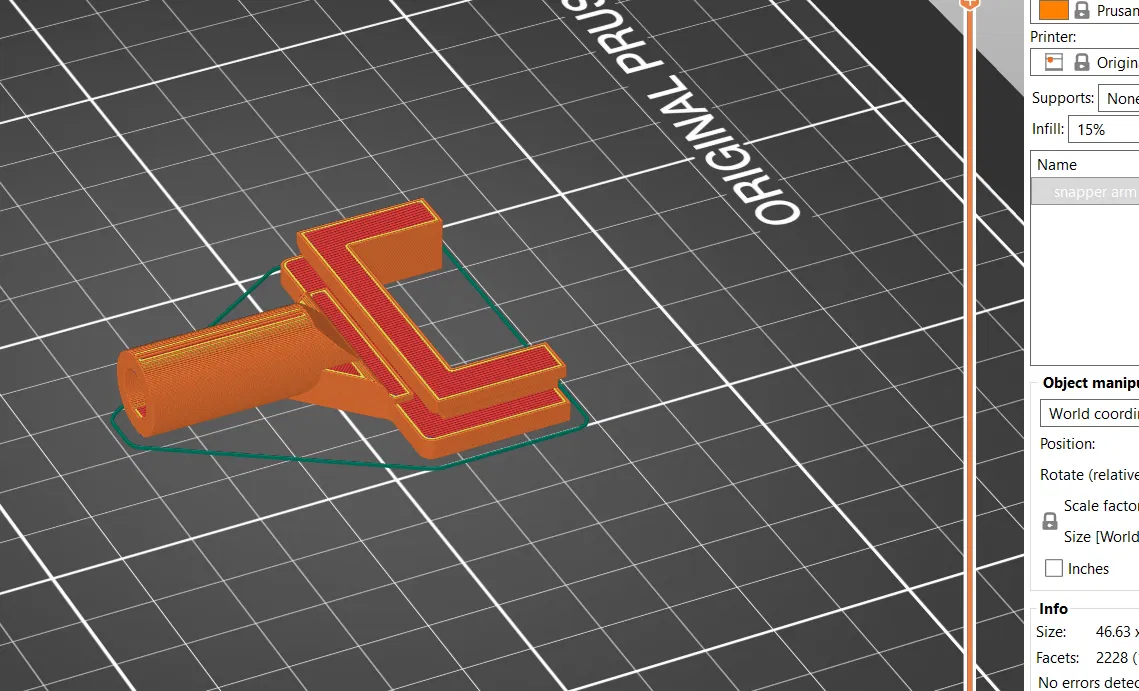 Đây là adapter cho phần cánh tay gắn trên dây bẫy chuột, giúp bạn kẹp một thanh gỗ tròn kích thước 1/4 inch. Nhờ đó, bạn có thể điều chỉnh độ dài của cánh tay đòn bằng cách thay đổi chiều dài của thanh gỗ. Thiết kế này cũng giúp bạn không cần phải cắt tỉa bẫy chuột. Mô hình này in không cần support. Mình nghĩ là mình đã in ở mức infill khoảng 15%.
