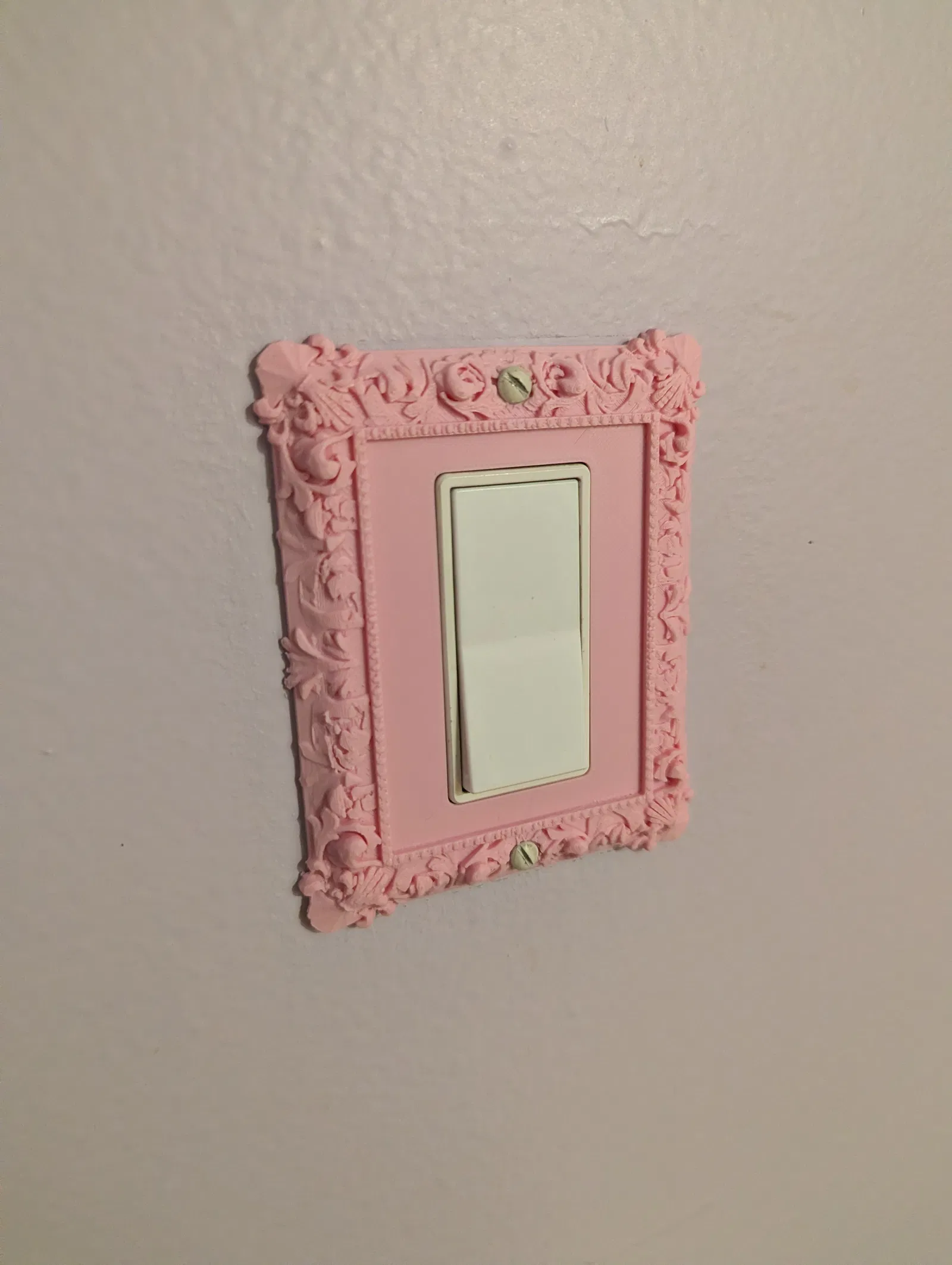 Sản phẩm được thiết kế với các đường nét chạm trổ tỉ mỉ, mô phỏng vẻ đẹp của những khung hình cổ điển thời xưa. Việc lắp đặt vô cùng đơn giản, bạn chỉ cần tháo nắp cũ ra và thay thế bằng chiếc ốp này bằng cách tận dụng chính những ốc vít có sẵn. Với thiết kế linh hoạt, nó phù hợp để che phủ các loại công tắc đèn hoặc ổ cắm điện phổ biến hiện nay. Tùy thuộc vào phong cách decor của căn phòng, bạn có thể lựa chọn màu nhựa in khác nhau như hồng pastel, trắng tinh khôi hoặc thậm chí là nhũ vàng để tăng thêm phần đẳng cấp cho ngôi nhà.