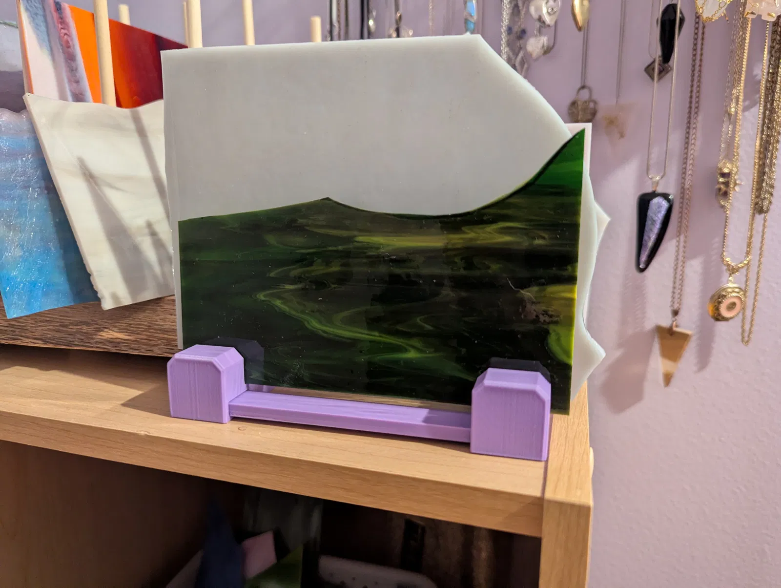 Thiết kế của khay này rất thông minh và tối ưu cho không gian bàn làm việc. Với cấu trúc dạng rãnh song song, nó cho phép bạn phân loại các tấm kính theo màu sắc, độ dày hoặc kích thước một cách trực quan. Điều này không chỉ bảo vệ các cạnh kính khỏi sự ma sát và va đập không đáng có mà còn giúp bạn dễ dàng kiểm soát lượng vật liệu mình đang có trong tay. Khay được thiết kế để đặt ổn định trên mặt bàn hoặc kệ sách, biến những mảnh kính lộn xộn thành một bộ sưu tập màu sắc đẹp mắt ngay trong góc làm việc của bạn.