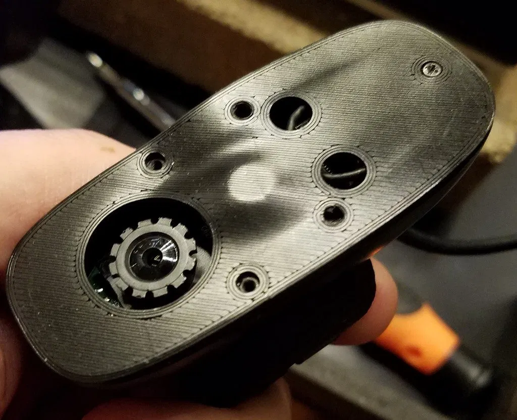 Mình đã cải tiến bản thiết kế tuyệt vời của CO-OCD cho webcam Logitech C270 bằng cách thêm vào ren vặn và các khe thông gió. Sau khi mình bắt đầu in bằng nhựa polycarbonate trong buồng in với nhiệt độ môi trường khoảng 38°C, toàn bộ hệ thống C270 của mình bắt đầu bị cong vênh. Mọi người có thể xem 2 tấm ảnh cuối để thấy tình trạng cong vênh của các linh kiện gốc.