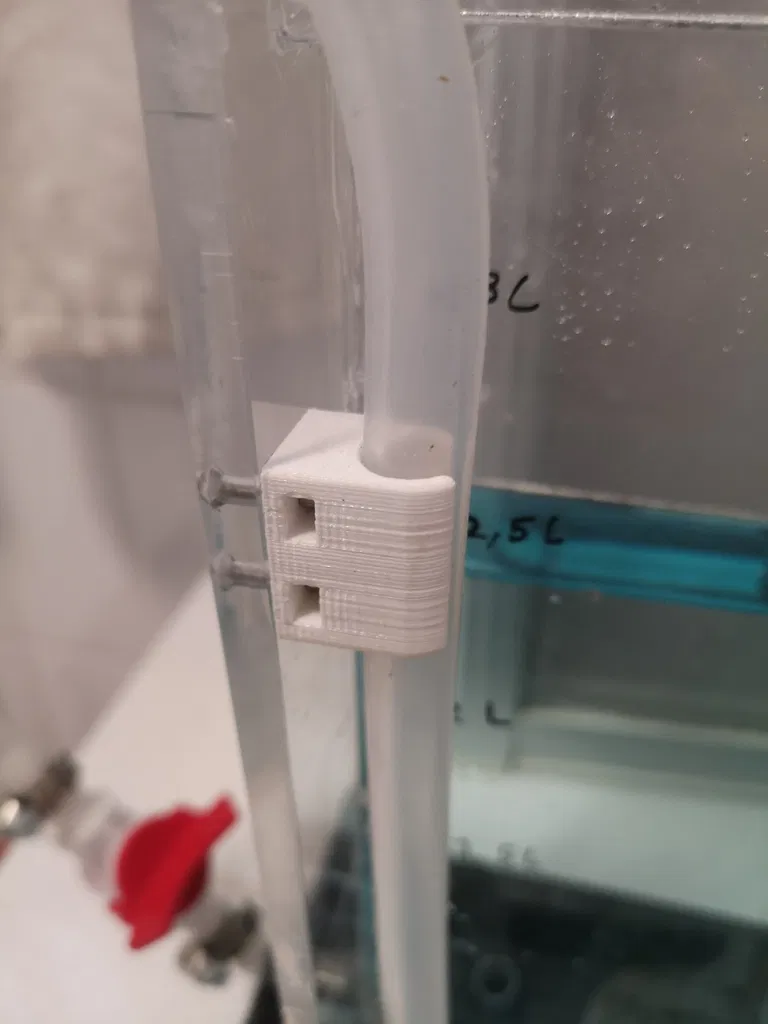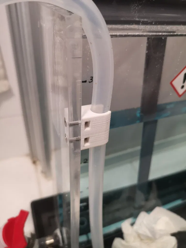 Đây là một thiết kế đơn giản nhưng cực kỳ tiện lợi dành cho những ai đang làm việc với các hệ thống bể chứa hóa chất, bể ăn mòn PCB hoặc các ứng dụng thí nghiệm cần cố định đường ống dẫn. Mẫu in 3D này đóng vai trò như một chiếc kẹp chắc chắn, giữ cho ống dẫn đường kính 12mm luôn nằm đúng vị trí, ngăn ngừa tình trạng ống bị gập, lỏng lẻo hoặc rơi khỏi vị trí mong muốn trong suốt quá trình vận hành hệ thống.