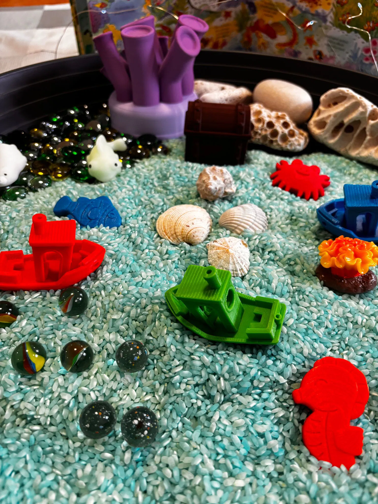 Bộ sưu tập các mô hình sinh vật biển dễ thương, có kích thước và hình dáng an toàn, được thiết kế chuyên biệt cho các hoạt động giáo dục cảm giác (Sensory Play). Sản phẩm an toàn, nhỏ gọn và phù hợp cho bé khám phá thế giới đại dương.