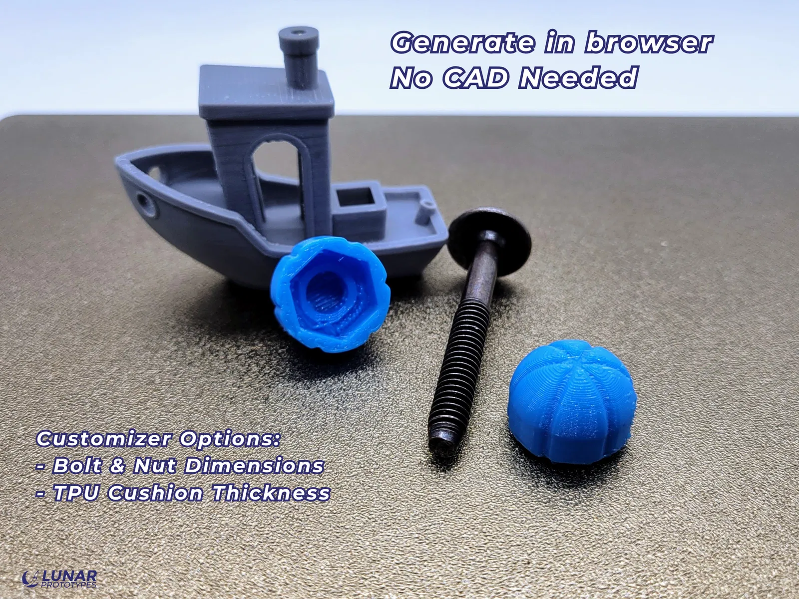 Sử dụng tính năng tùy chỉnh trên trang web của Lunar Prototypes. Không cần dùng phần mềm CAD hay chỉnh sửa file phức tạp.