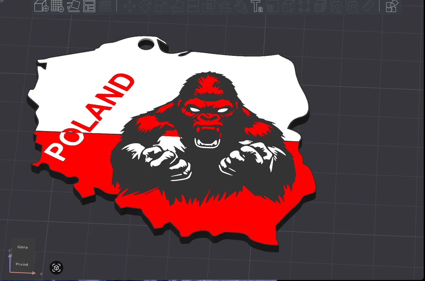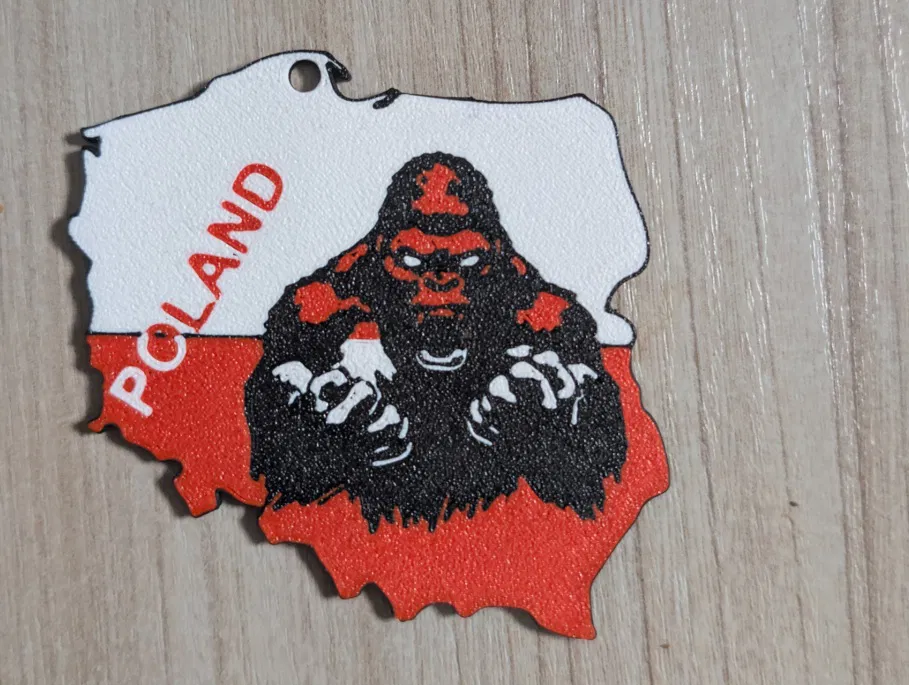 Bạn đang tìm kiếm một món phụ kiện độc đáo để trang trí cho chùm chìa khóa hay chiếc xe hơi của mình? Mẫu in 3D "Mapa Polski + Goryl" (Bản đồ Ba Lan kèm hình tượng Goryl) chính là lựa chọn hoàn hảo dành cho bạn. Sản phẩm này không chỉ đơn thuần là một chiếc móc khóa, mà còn là một vật phẩm trang trí thể hiện cá tính mạnh mẽ với sự kết hợp thú vị giữa hình dáng bản đồ quốc gia Ba Lan và biểu tượng chú khỉ đột đầy uy lực ở trung tâm.