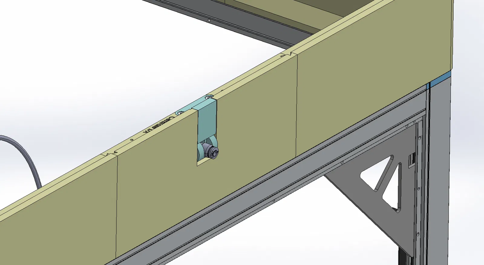 Khung được chia thành nhiều đoạn để thuận tiện cho việc lắp ráp khớp nối, ở phần trung tâm phía bên phải mình có thêm một hệ thống dao động tự điều chỉnh theo vị trí của ống dẫn nhựa.