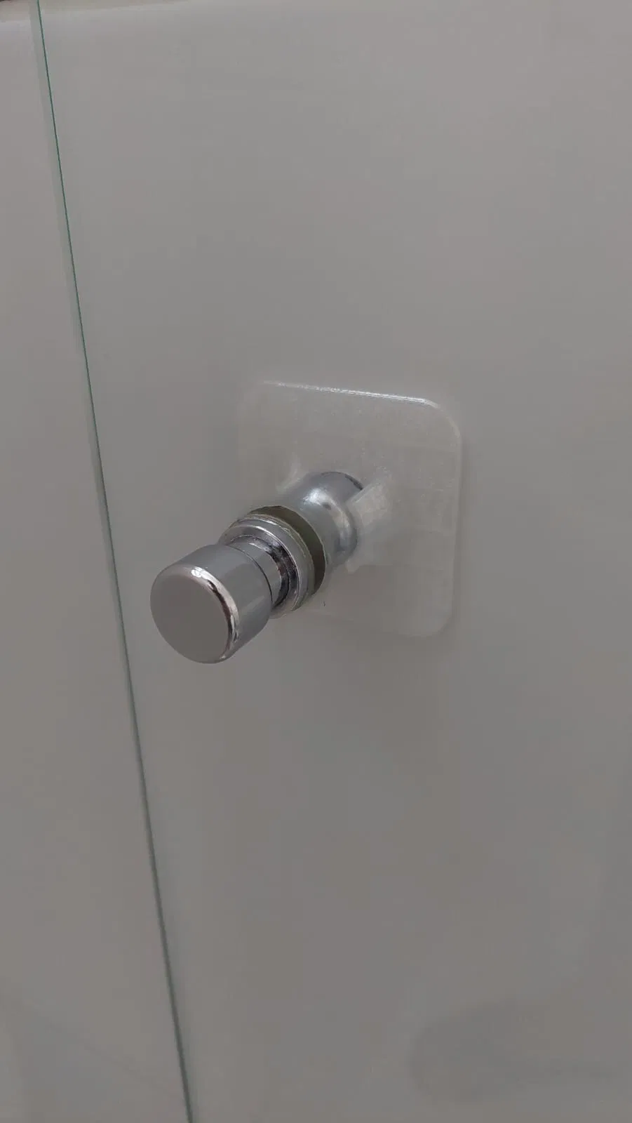 Mẫu chốt chặn đơn giản giúp giữ cố định cửa kính phòng tắm tại chỗ. Thiết kế tối ưu để lắp đặt bằng băng keo mà không cần khoan đục, sử dụng lực ma sát để cố định tay nắm cửa với bán kính 21mm. Bạn có thể dễ dàng điều chỉnh kích thước tùy theo nhu cầu sử dụng.
