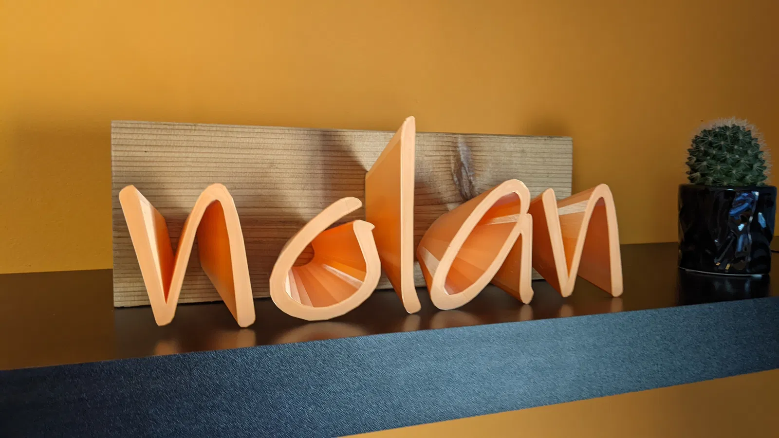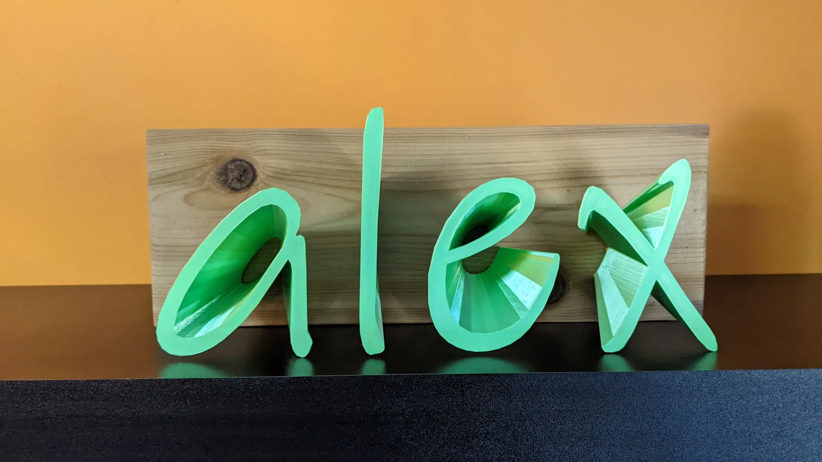 Hãy sử dụng các loại nhựa PLA màu sắc yêu thích của bạn để tạo ra những món quà đặc biệt dành tặng cho con cái, bạn bè và những người thân yêu. Mình đã dùng các tấm gỗ rào tuyết tùng, cắt và chà nhám, sau đó phủ một lớp sơn bóng Varathane trước khi dùng keo dán sắt để gắn mô hình lên.