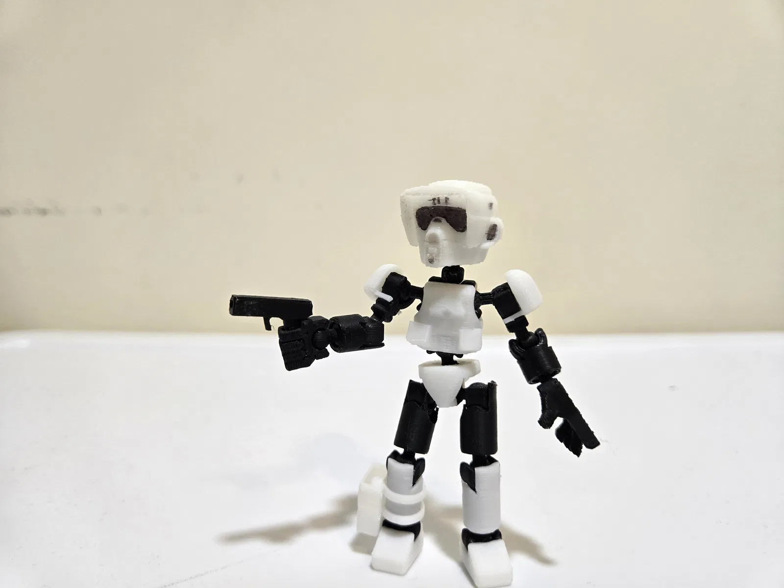 Mô hình Mini 13 Scout Trooper (hay còn gọi là biker scout) đi kèm vũ khí DLT-19X. Mình cũng đã thêm phiên bản Scout Trooper từ tựa game Jedi: Fallen Order với dùi cui. Mình đã tích hợp sẵn bàn tay vào phía sau lưng của bản JFO Scout trooper để nhân vật có thể cầm dùi cui (bạn cũng có thể in phiên bản không dính liền tay nếu muốn). Bạn có thể lấy các bộ phận cơ thể còn lại từ các tác giả khác, ví dụ như tay, chân và bao súng từ Dr. Operator. Phần vai thì bạn có thể lấy từ egz.