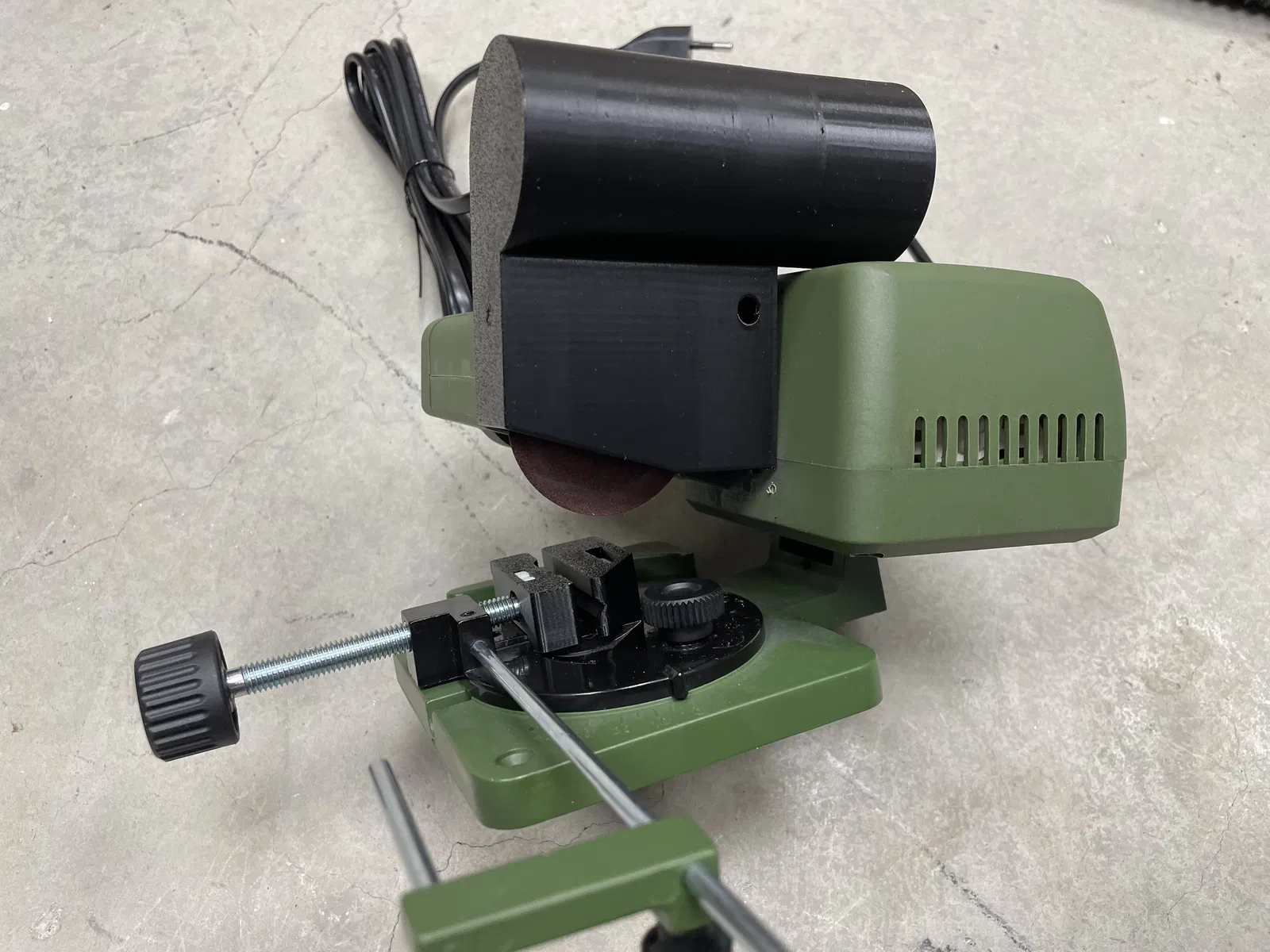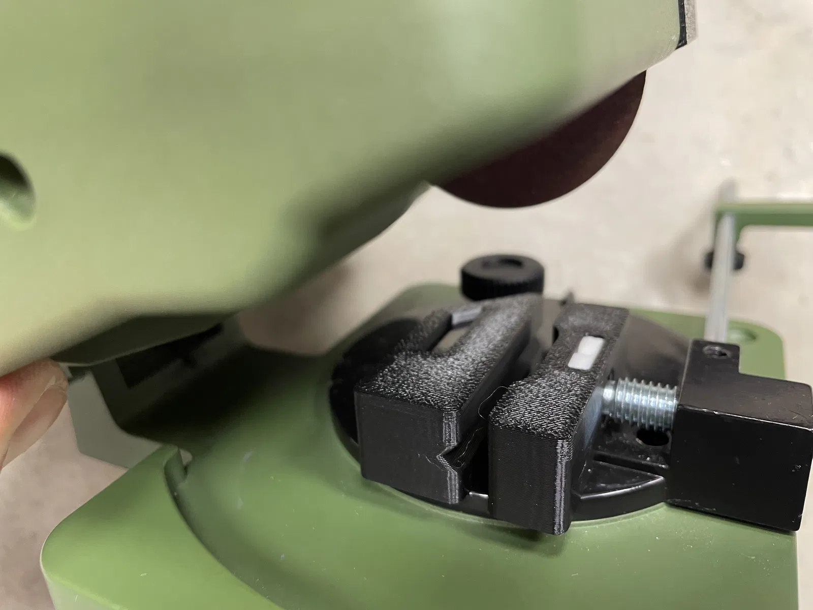 Sau khi lắp ráp, mình nhận thấy phần đầu máy KG50 không thể hạ thấp được như ban đầu do má kẹp phía sau làm độ cao tăng lên một chút, nhất là khi xoay ê-tô về hướng 45°. Nếu điều này gây bất tiện, bạn cứ tháo bỏ phần "FesteKlemmseite" hoặc tự chỉnh sửa file FreeCad tùy ý.