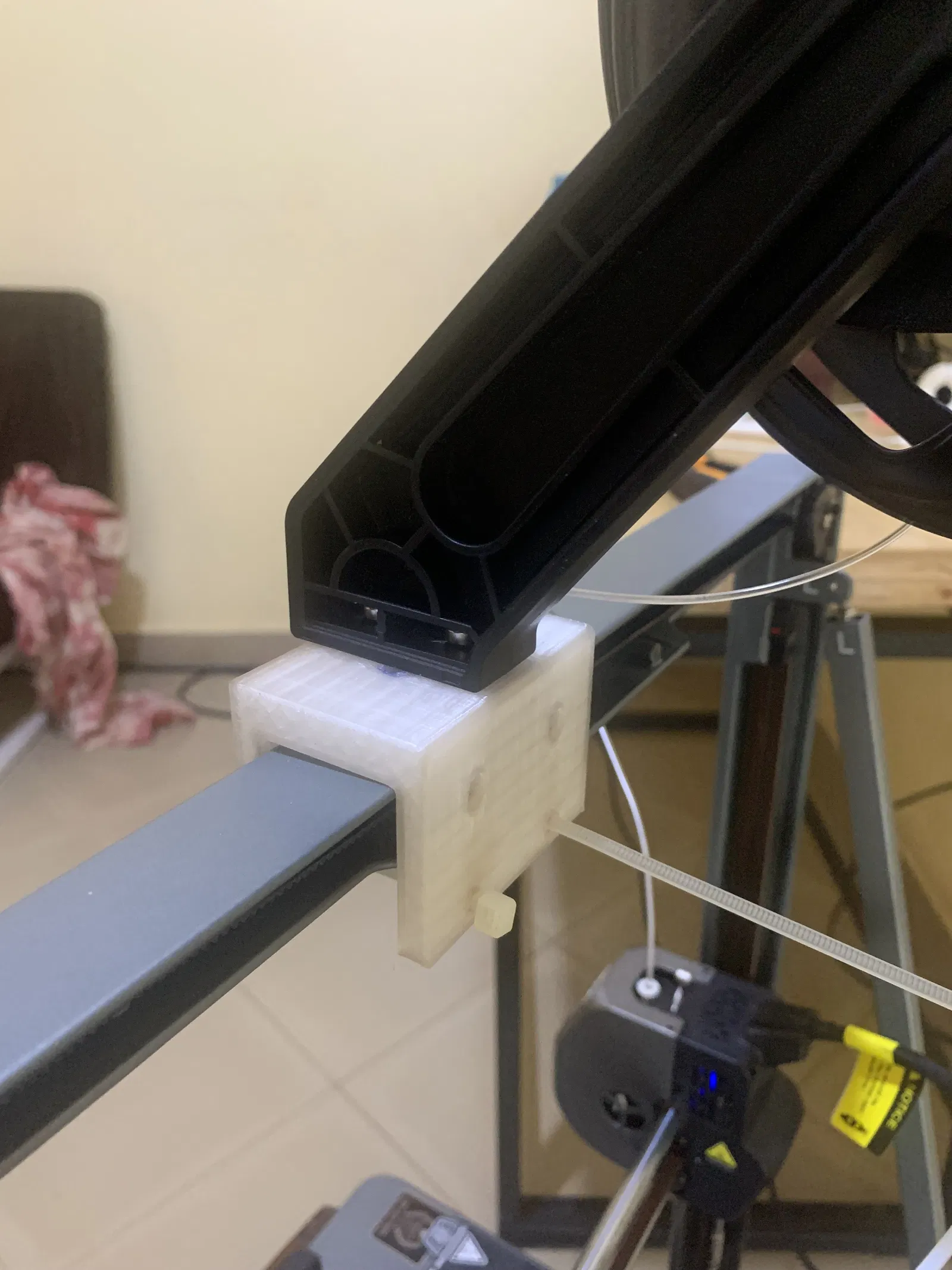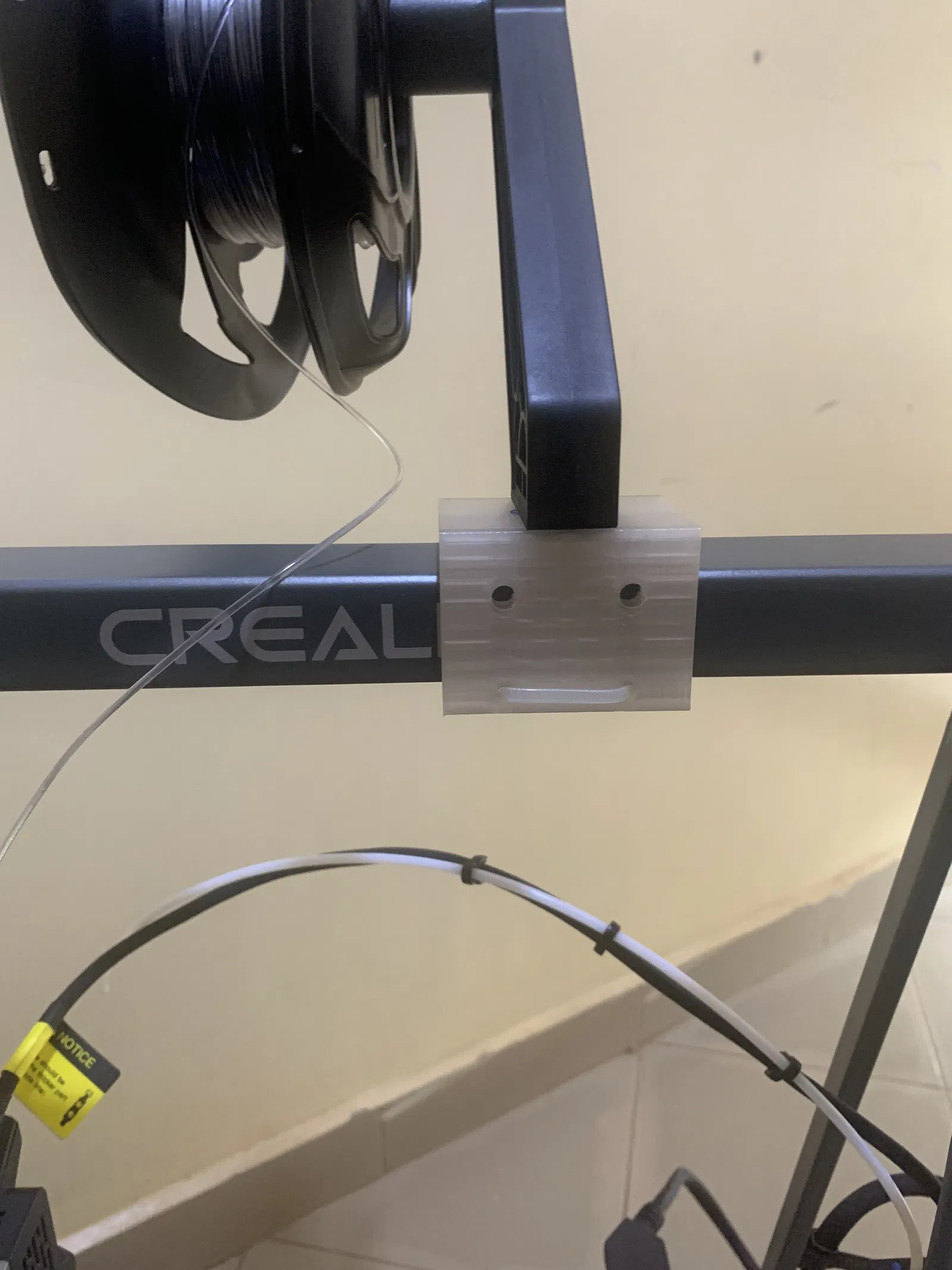 Thiết kế này giúp chuyển vị trí treo cuộn nhựa từ bên hông lên phía trên đỉnh máy. Cách này không chỉ tiết kiệm thời gian mà còn giúp bạn không cần tốn thêm chi phí để in một bộ giá treo rời hoàn toàn mới.