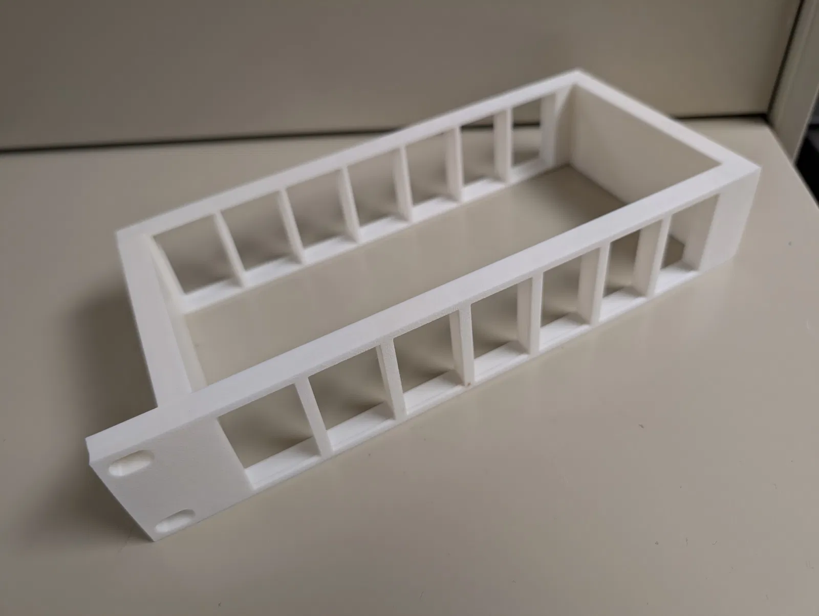 Giải quyết vấn đề quản lý thiết bị mạng với khay gắn rack 3D chuyên dụng cho Ubiquiti Unifi PoE Over 2-Wire Retrofit Extender (UACC-Retrofit-PoE-2Wire). Sản phẩm cho phép bạn lắp đặt gọn gàng cùng lúc 7 thiết bị trong tủ rack, tối ưu hóa không gian và hỗ trợ tản nhiệt hiệu quả. Thiết kế thông minh, chắc chắn với 4 điểm bắt vít, giúp cố định thiết bị an toàn. Phù hợp cho cả hệ thống mạng gia đình và doanh nghiệp nhỏ, giúp tủ rack chuyên nghiệp hơn. Dễ dàng in ấn với các vật liệu thông dụng như PETG hoặc PLA. Đây là giải pháp hữu ích để giữ cho hệ thống mạng luôn ngăn nắp và khoa học, tránh tình trạng dây nhợ lộn xộn hay thiết bị nằm chông chênh.