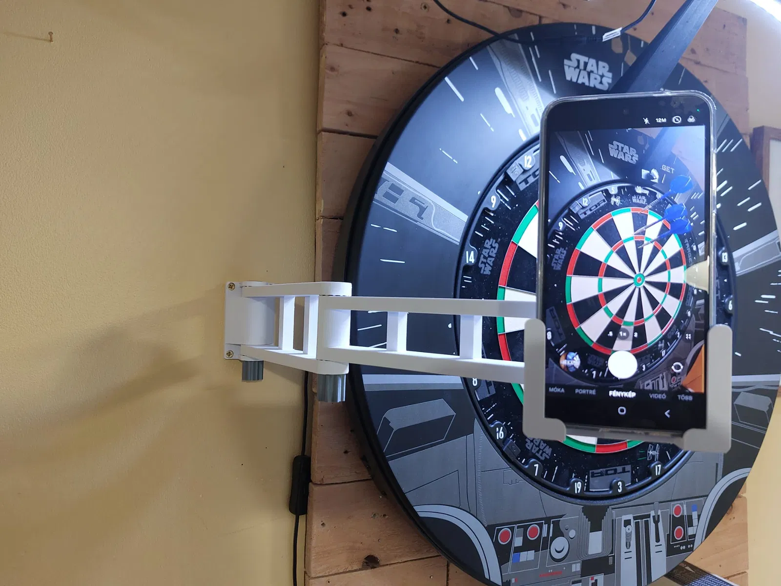 Giá đỡ điện thoại gắn tường được thiết kế chuyên dụng cho nhu cầu chơi phi tiêu.