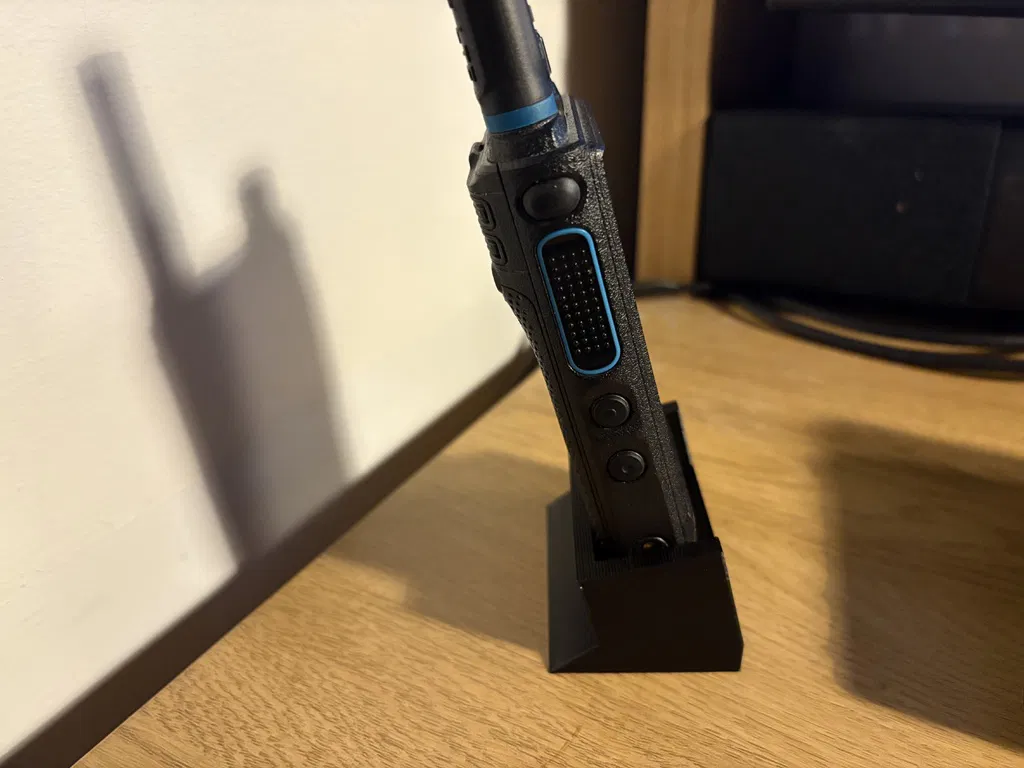 Việc sử dụng giá đỡ in 3D không chỉ giúp không gian làm việc của bạn chuyên nghiệp hơn mà còn bảo vệ thiết bị khỏi các va đập không đáng có. Thay vì để bộ đàm nằm ngang trên bàn chiếm diện tích, bạn có thể đặt nó đứng thẳng trên đế, giúp tiết kiệm không gian và giữ cho mặt bàn luôn ngăn nắp. Đây là phụ kiện đơn giản nhưng cực kỳ hữu ích cho những ai thường xuyên sử dụng bộ đàm trong công việc hằng ngày.