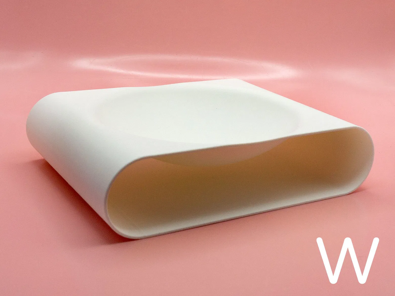 Catch All Tray W từ Pork3D sở hữu thiết kế uốn cong mượt mà, tạo nên một chiếc khay có lòng rộng rãi để đựng các vật dụng hàng ngày. Bề mặt uốn lượn liên tục mang lại vẻ ngoài điêu khắc tinh tế, đồng thời giúp gom đồ đạc về phía trung tâm một cách tự nhiên.