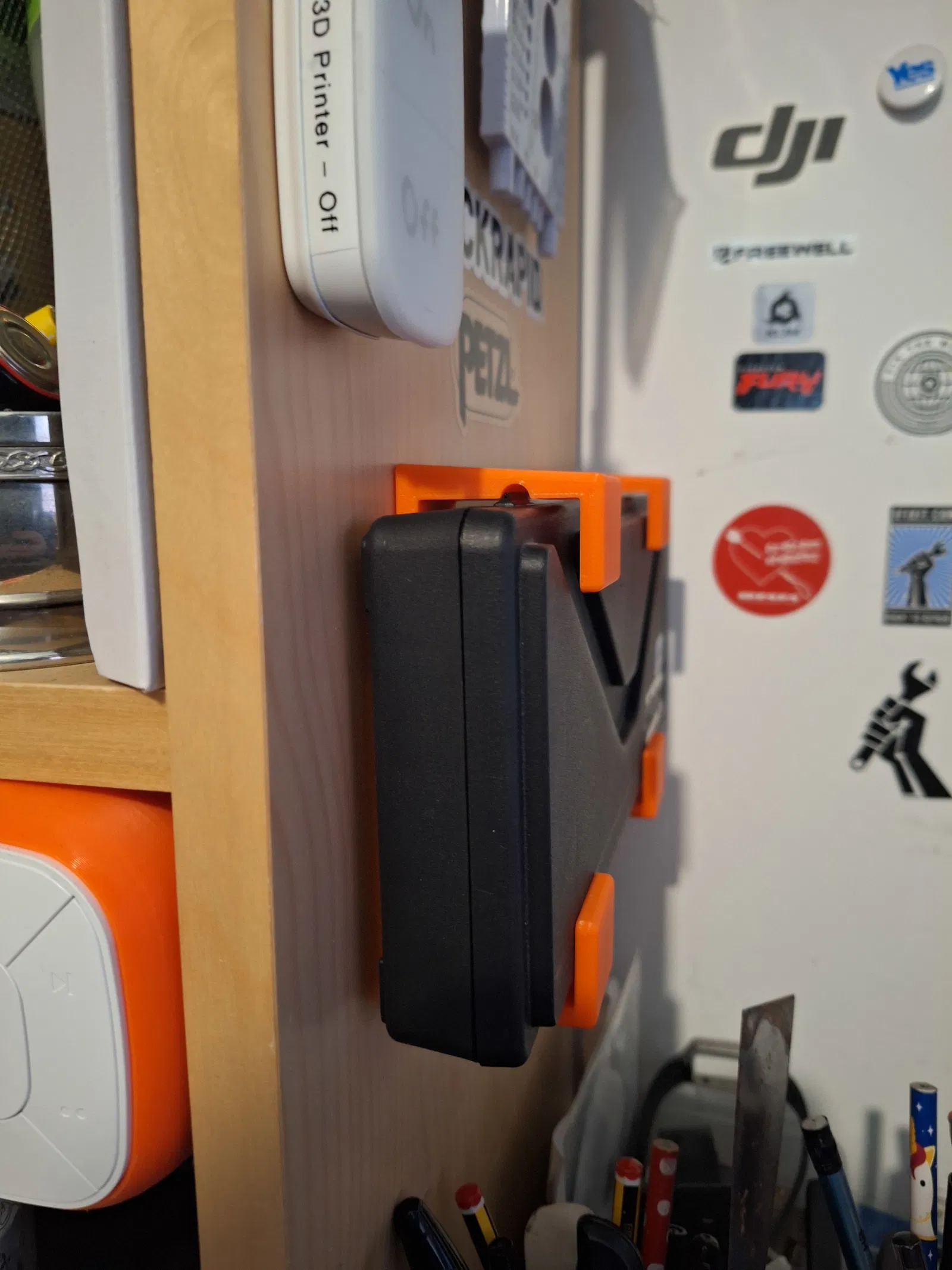 Mình muốn tìm một chỗ để cất giữ thước cặp điện tử của mình sao cho gọn gàng, nên mình đã tự thiết kế cái giá đỡ này.
