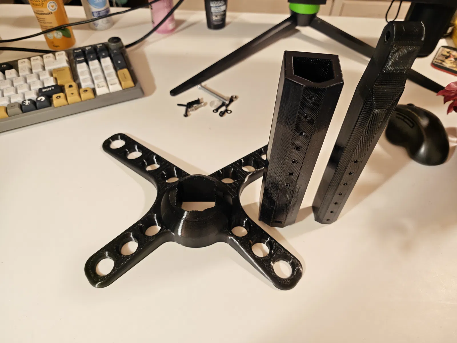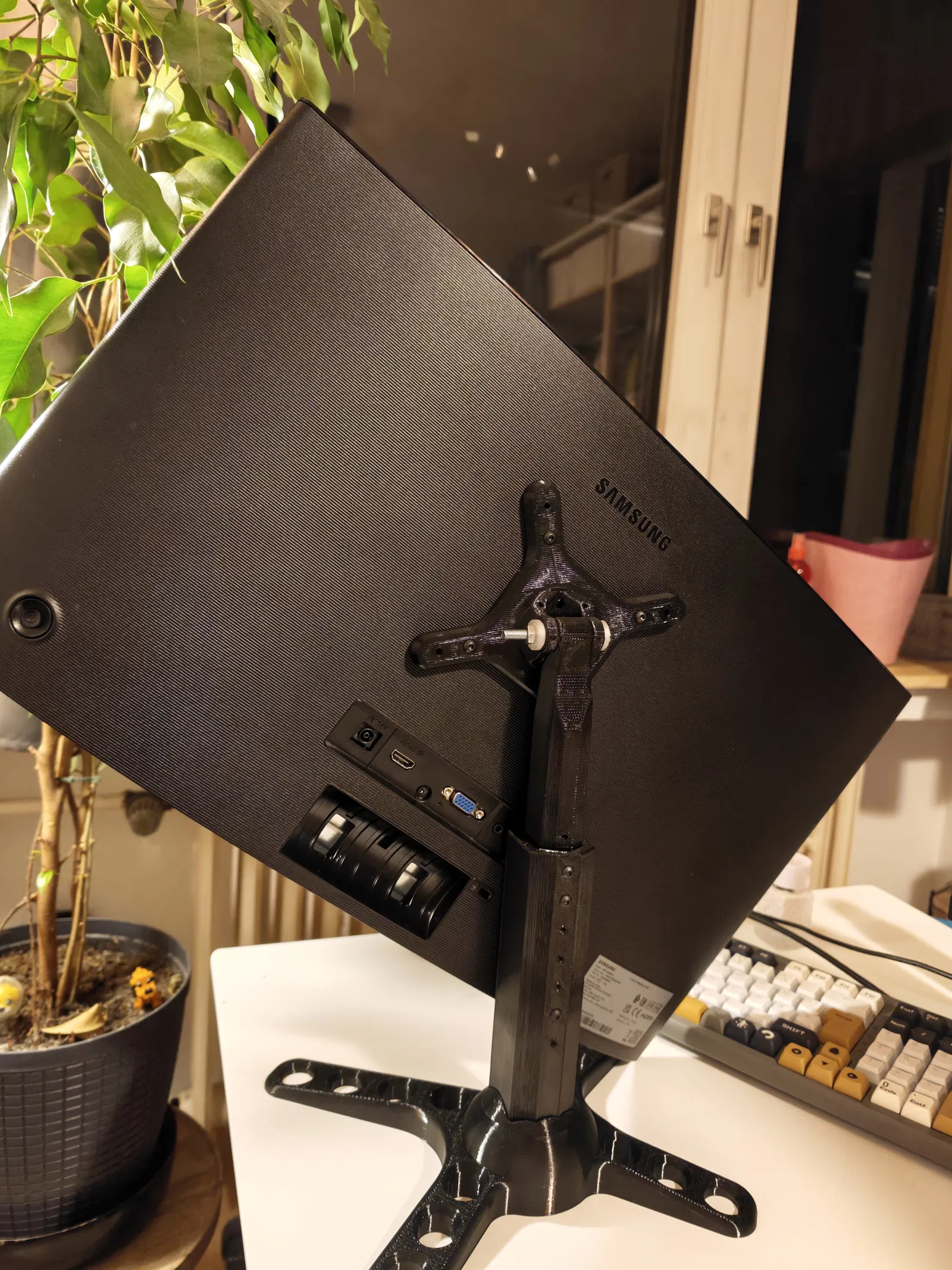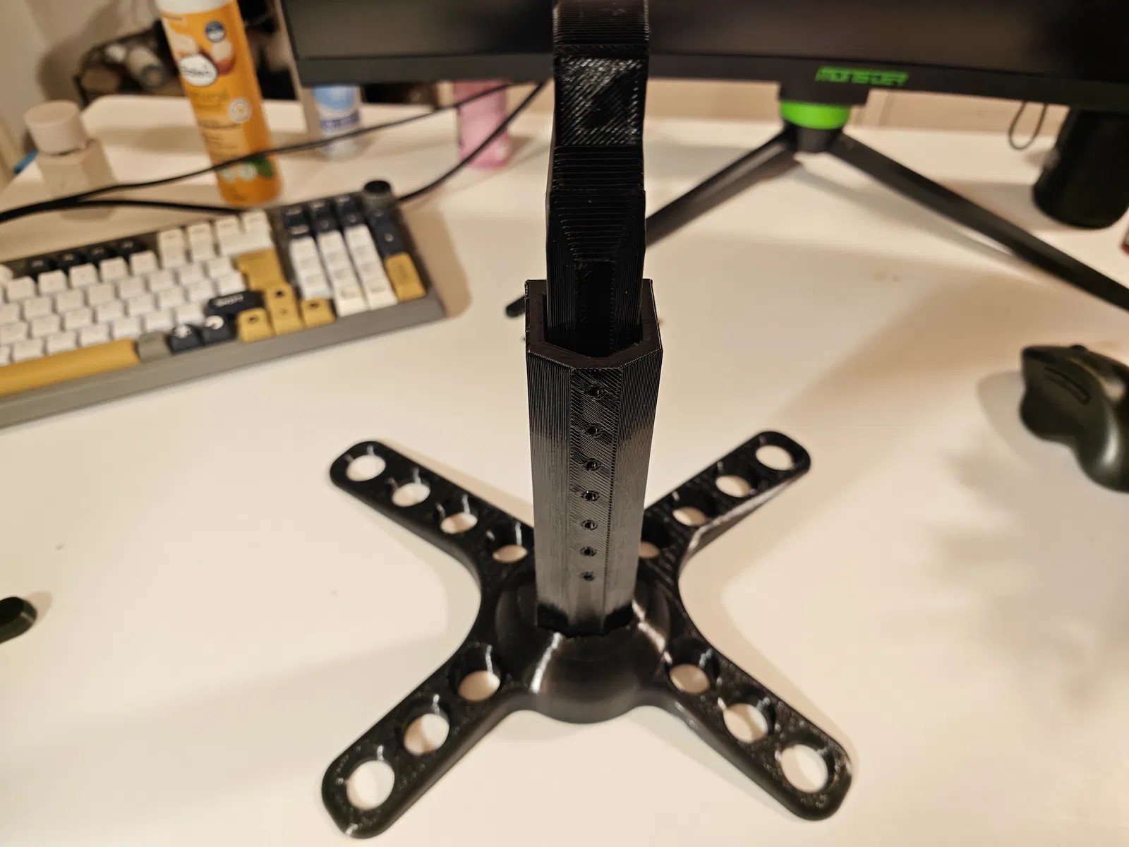 Chân đế màn hình VESA đơn giản, có thể xoay, kéo dài, tùy chỉnh độ cao linh hoạt và cực kỳ chắc chắn, hỗ trợ tốt cho màn hình lên đến 32 inch. Mỗi mẫu thiết kế là cả một tâm huyết, nơi mình đã bỏ ra không biết bao nhiêu thời gian, chất xám và cả caffeine vào đó. Mình in, tinh chỉnh, in lại, và có khi là muốn khóc luôn cho đến khi mọi thứ thật ưng ý. Đúng là chủ nghĩa hoàn hảo là một lời nguyền, mà mình thì dính lời nguyền đó thật rồi. Nếu bạn tình cờ thấy các mẫu của mình và nghĩ rằng "Wow, người này chắc cần một sở thích mới... hoặc là cần ngủ một giấc", thì đừng ngần ngại nhấn nút thích nhé. Đó giống như một cái vỗ vai động viên trên mạng vậy. Và nếu bạn thấy hào phóng hơn nữa, hãy mời mình một ly cà phê qua Ko-fi. Vì nói thật lòng là những đêm dài thức trắng thiết kế cũng cần năng lượng lắm chứ. Cảm ơn các bạn đã lắng nghe bài diễn thuyết của mình. 😌☕