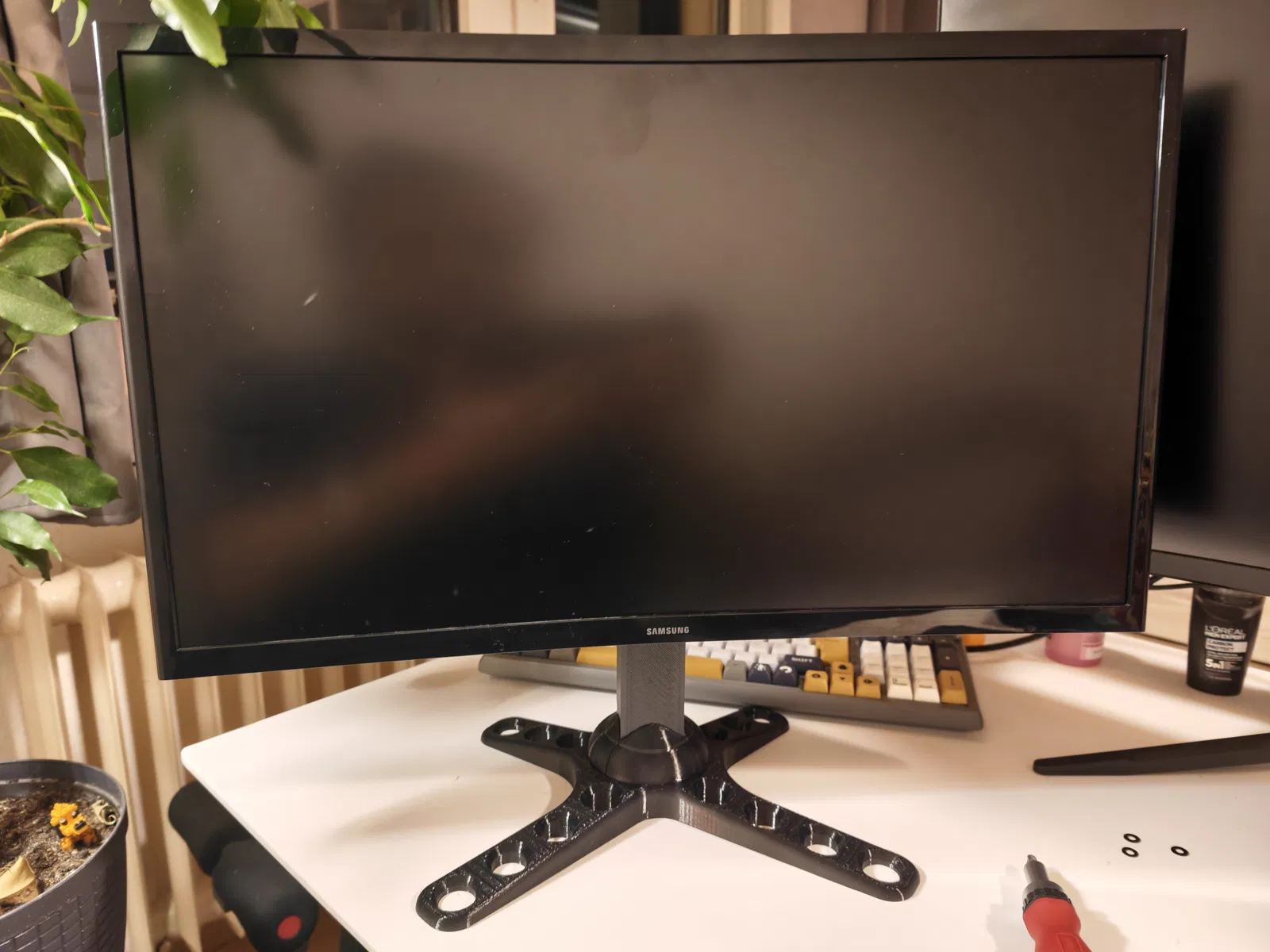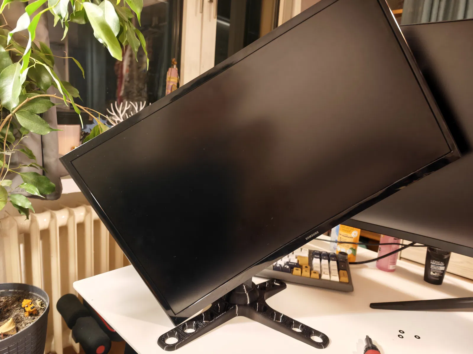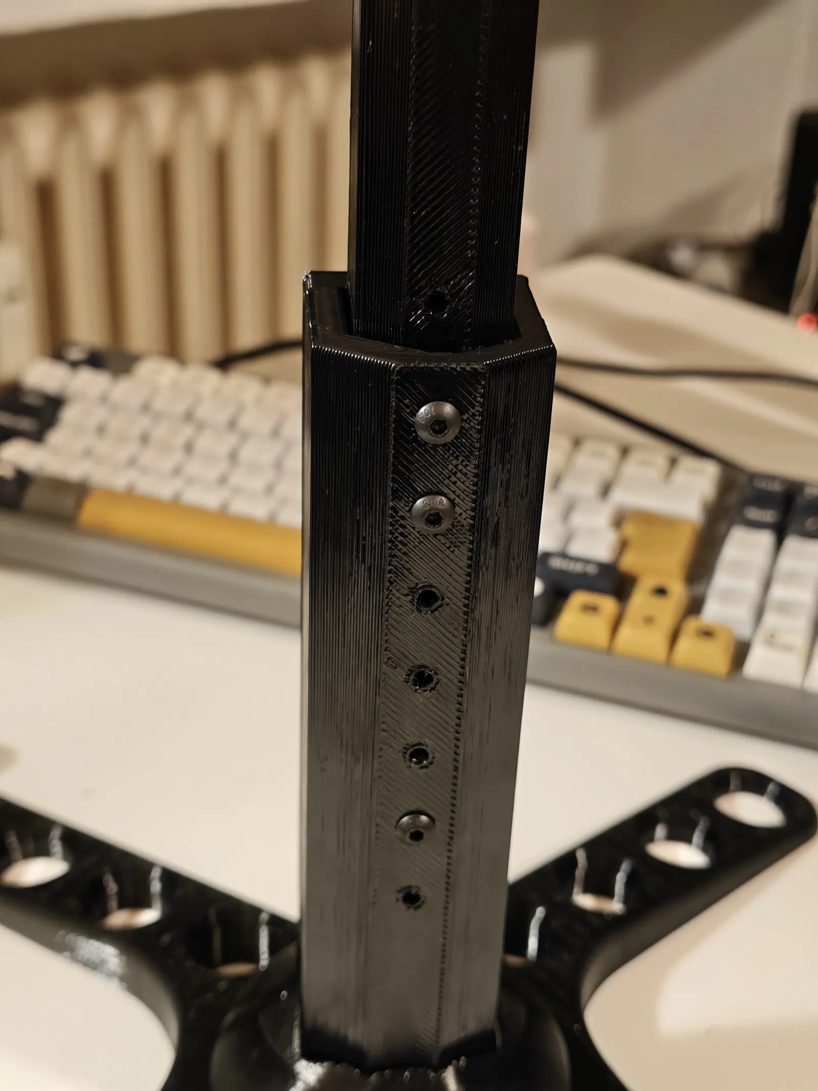 Chân đế màn hình VESA đơn giản, có thể xoay, kéo dài, tùy chỉnh độ cao linh hoạt và cực kỳ chắc chắn, hỗ trợ tốt cho màn hình lên đến 32 inch. Mỗi mẫu thiết kế là cả một tâm huyết, nơi mình đã bỏ ra không biết bao nhiêu thời gian, chất xám và cả caffeine vào đó. Mình in, tinh chỉnh, in lại, và có khi là muốn khóc luôn cho đến khi mọi thứ thật ưng ý. Đúng là chủ nghĩa hoàn hảo là một lời nguyền, mà mình thì dính lời nguyền đó thật rồi. Nếu bạn tình cờ thấy các mẫu của mình và nghĩ rằng "Wow, người này chắc cần một sở thích mới... hoặc là cần ngủ một giấc", thì đừng ngần ngại nhấn nút thích nhé. Đó giống như một cái vỗ vai động viên trên mạng vậy. Và nếu bạn thấy hào phóng hơn nữa, hãy mời mình một ly cà phê qua Ko-fi. Vì nói thật lòng là những đêm dài thức trắng thiết kế cũng cần năng lượng lắm chứ. Cảm ơn các bạn đã lắng nghe bài diễn thuyết của mình. 😌☕