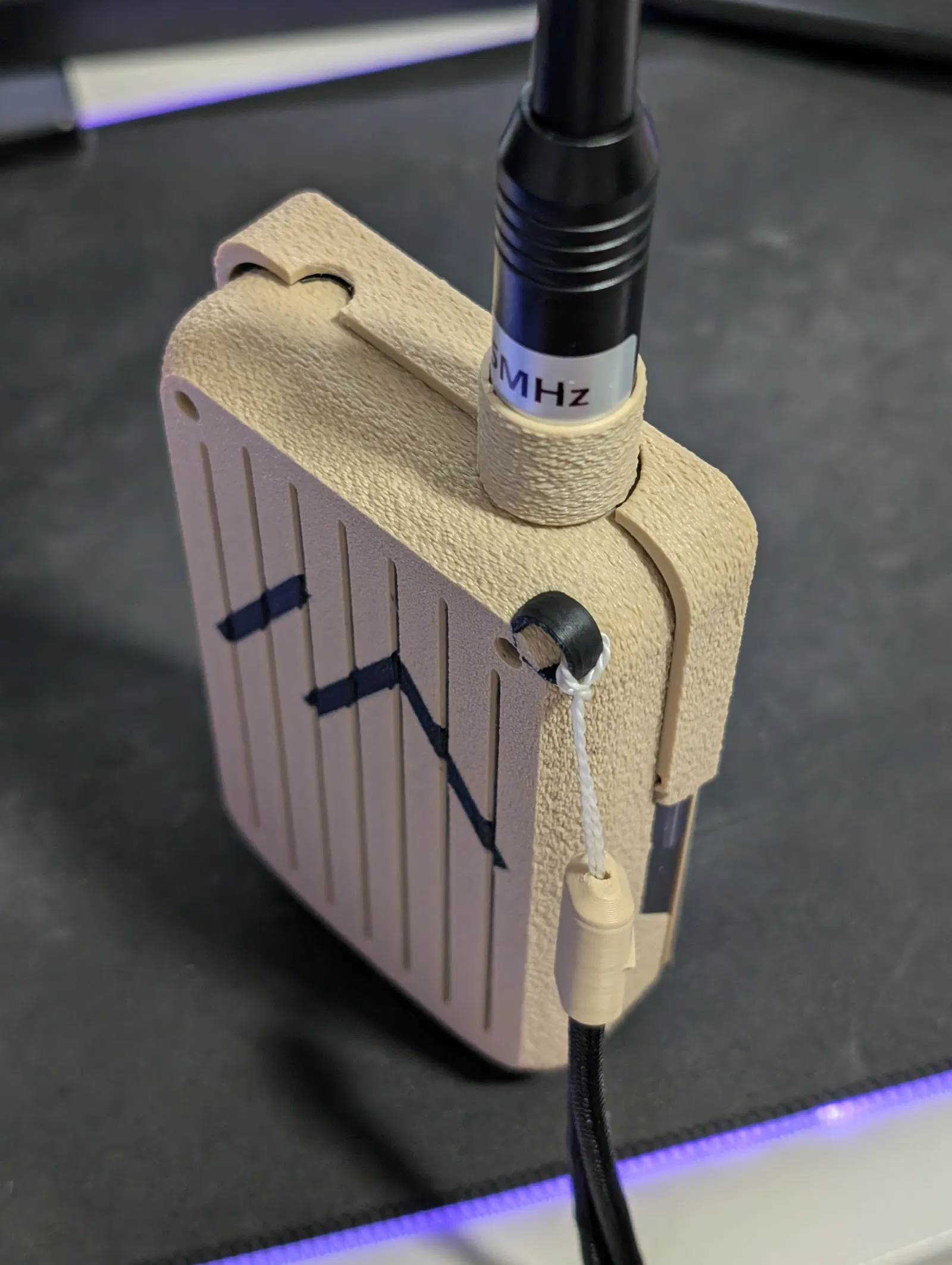 Bao đeo được thiết kế nghiêng 30 độ để ăng-ten 39cm không bị vướng vào mặt. Mình thường dùng cái này khi đi cắm trại hoặc đi bộ đường dài.