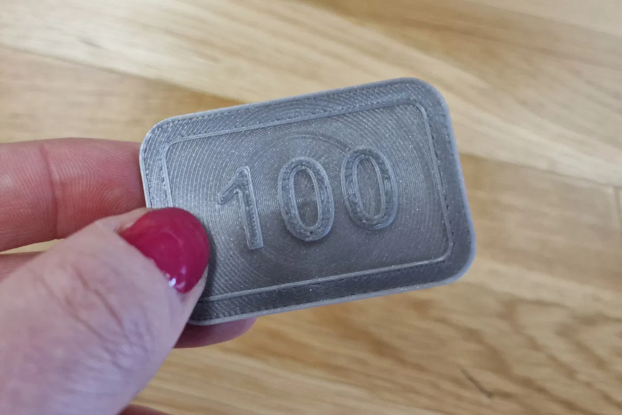 Kích thước đã chọn được tối ưu hóa cho việc in nhanh và in theo mẻ hiệu quả, cho phép in tối đa 15 token trên bàn in của máy Prusa CORE One trong một lần in.