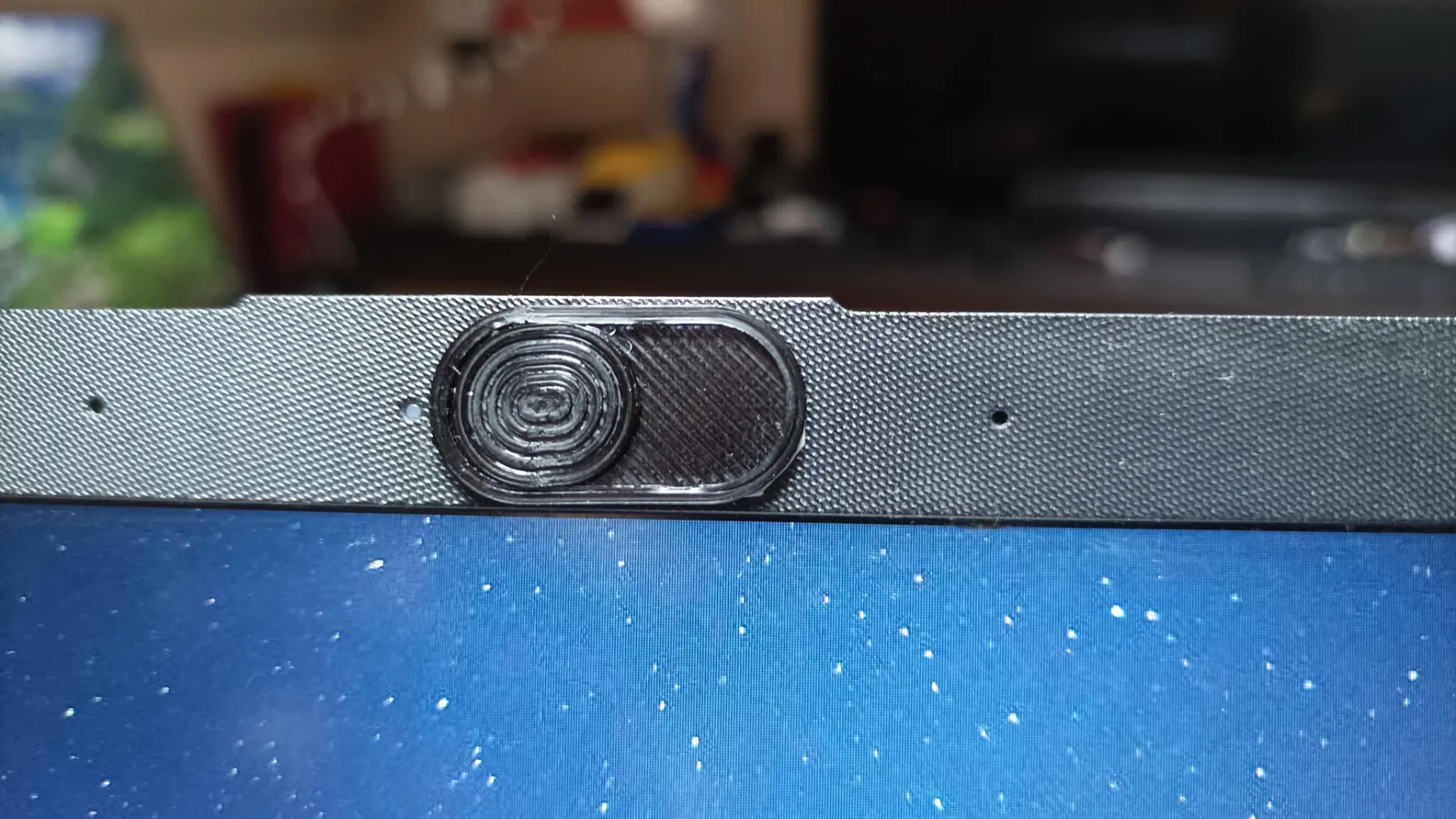 Nắp che webcam dạng trượt 9mm thiết kế tối giản, bảo vệ quyền riêng tư cho laptop. Hướng dẫn chi tiết về thông số in PLA/PETG và cách lắp đặt bằng băng dính 3M để đảm bảo hoạt động mượt mà.
