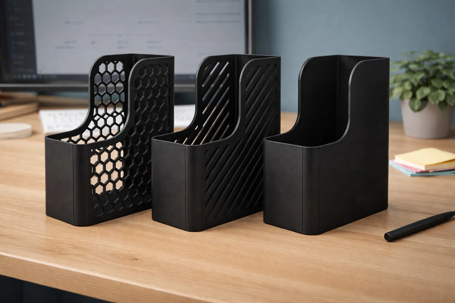 Tự in ngay khay đựng giấy A4 để bàn tiện dụng với 3 phong cách thiết kế khác nhau. Sản phẩm giúp sắp xếp tài liệu gọn gàng, in 3D dễ dàng mà không cần support, phù hợp cho mọi không gian làm việc tại văn phòng hoặc ở nhà.