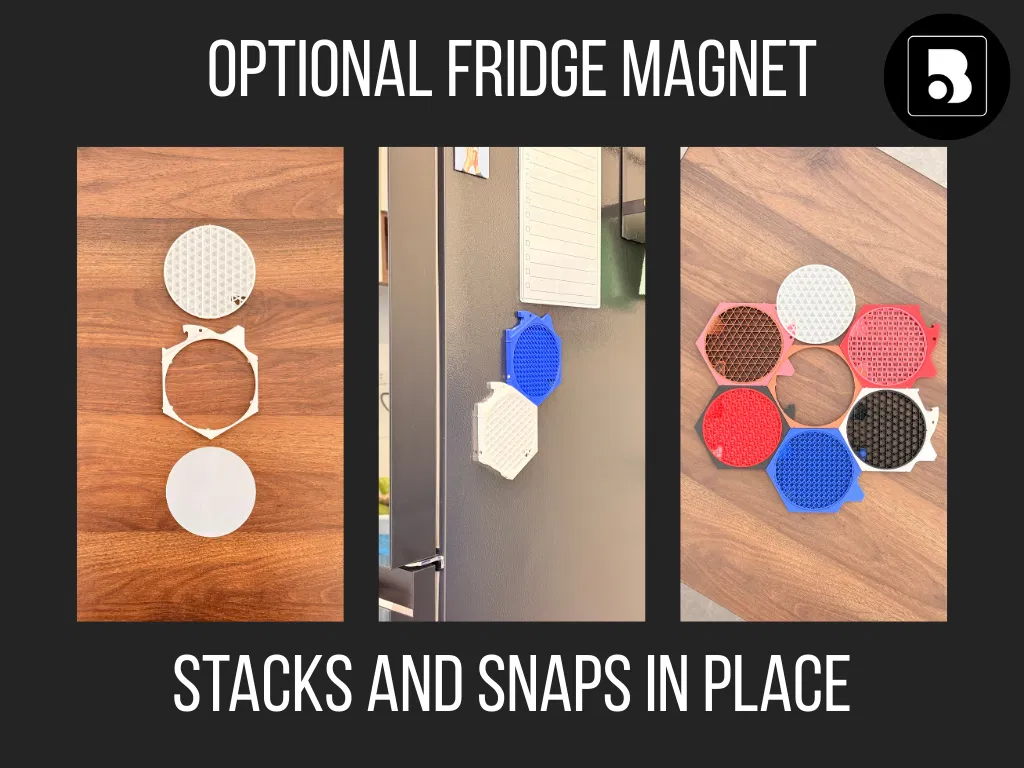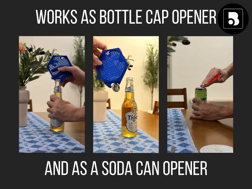⭐⭐⭐⭐⭐ Không chỉ là đế lót ly, SnapBar còn tích hợp thêm nhiều công cụ hữu ích. Các mô-đun bao gồm chức năng mở nắp chai bia và khui lon nước ngọt, cực tiện lợi trong các buổi tụ họp. Đế lót cũng có thể dùng làm nam châm dán tủ lạnh, giúp bạn cất giữ gọn gàng trên các bề mặt kim loại khi không sử dụng. (kích thước khe nam châm là 4mm x 3mm).
