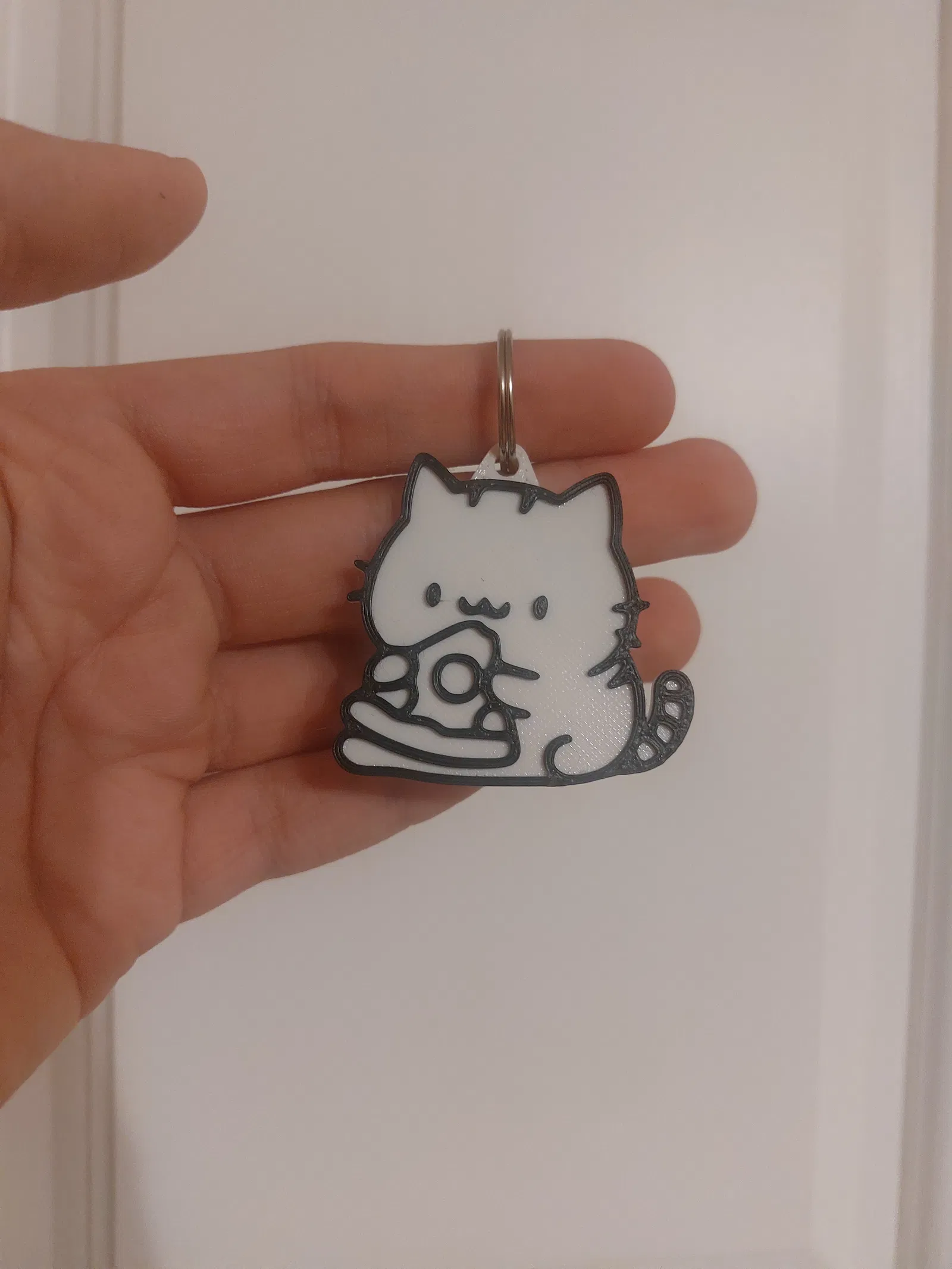 Mẫu móc khóa Mèo ăn Pizza với lỗ treo được thiết kế lại chắc chắn hơn. Bạn có thể dễ dàng in nhiều màu bằng cách thêm lệnh thay đổi filament trong phần mềm slicer. Rất mong nhận được phản hồi về độ bền sau khi các bạn in thử!