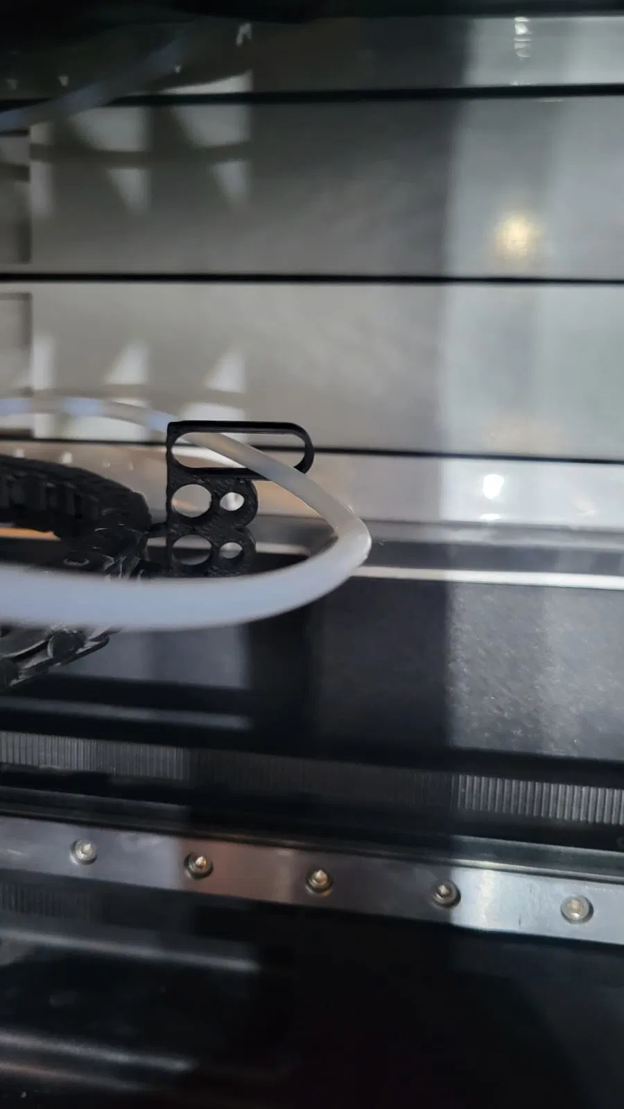 Vì không hài lòng với mấy cái kẹp xích cáp (cable chain) đi kèm máy và hy vọng việc thay dây tóc (filament) sẽ mượt mà hơn, tôi đã thiết kế cái kẹp này để giúp nâng ống PTFE lên, tạo thêm không gian di chuyển dọc theo trục X và Y một cách ngay ngắn, đồng thời tăng bán kính uốn cong cho ống.