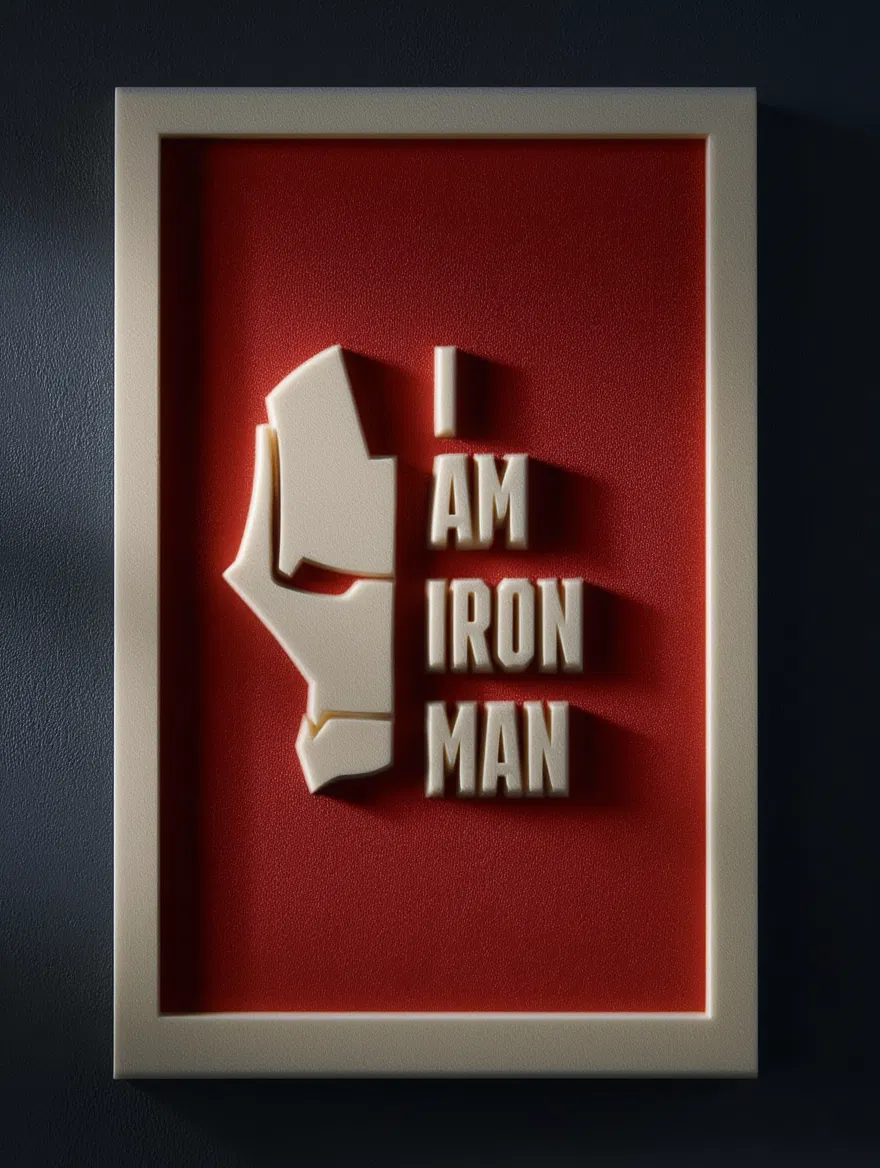 Mang phong cách anh hùng đầy cá tính vào không gian của bạn với mẫu tranh treo tường 3D tối giản, lấy cảm hứng từ khoảnh khắc kinh điển “I AM IRON MAN”. Được thiết kế với những đường nét sắc sảo, độ tương phản cao và dễ in, tác phẩm này là món đồ trang trí hoàn hảo cho những tín đồ yêu công nghệ, truyện tranh và phong cách thiết kế đồ họa mạnh mẽ.