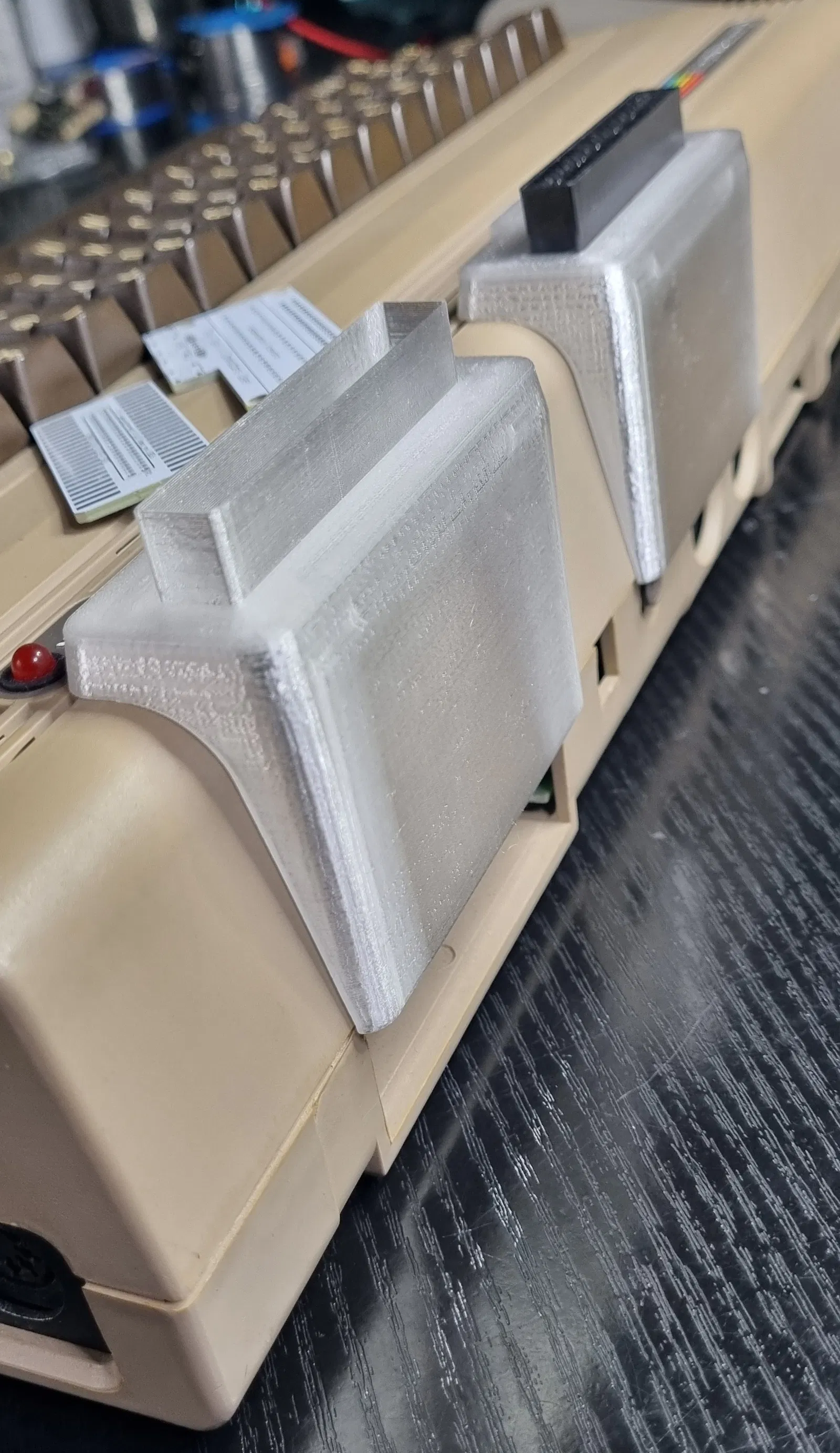 Mình vốn không thích cảnh mấy băng game đẹp mắt bị che khuất phía sau chiếc Commodore 64 khi đang chơi. Vì vậy, mình đã nghĩ ra giải pháp này. Đây là bản độ không làm hư hại máy (non-destructive) cho Commodore 64 (Ultimate). Thiết kế này có thể gắn thêm tối đa ba nút bấm cho Commodore 64 Ultimate, hoặc chỉ cần một nút reset cho phần cứng retro C64 nguyên bản. Tiếc là phần này không thể hoạt động nếu thiếu bảng mạch. Bạn có thể mua bảng mạch từ mình. Hãy liên hệ với mình qua email [email protected].