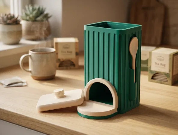 Giữ góc trà của bạn ngăn nắp với hộp đựng túi trà in 3D hiện đại. Thiết kế thông minh với ngăn rộng rãi và khe cắm muỗng, phù hợp cho nhà bếp, văn phòng và các không gian theo phong cách tối giản.