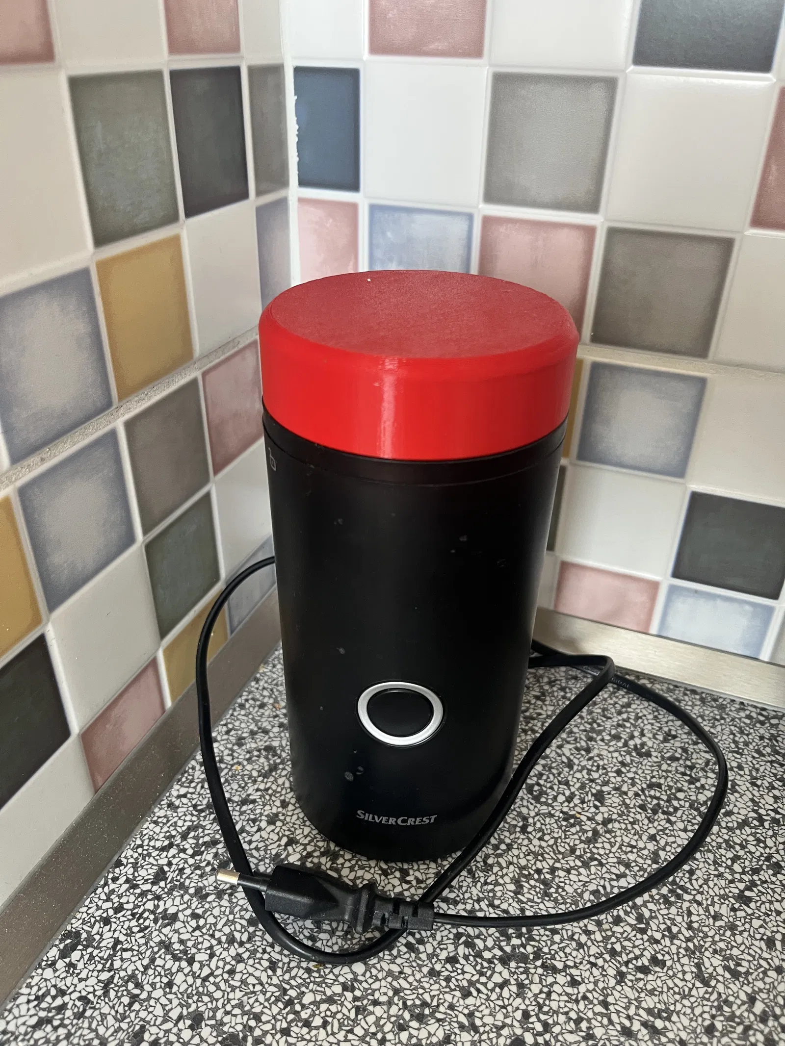 Thiết kế của nắp thay thế này được tinh chỉnh để vừa khít với miệng máy xay Silver Crest, đảm bảo bụi cà phê không bị bay ra ngoài khi xay và giữ an toàn cho người dùng. Bạn có thể chọn lựa chất liệu nhựa tùy ý để phối màu, ví dụ như màu đỏ nổi bật như trong ảnh hoặc bất kỳ màu sắc nào phù hợp với không gian bếp của gia đình mình. Việc lắp đặt vô cùng đơn giản, chỉ cần in ra và đậy nhẹ nhàng lên trên, thiết bị sẽ được bảo vệ hoàn hảo.