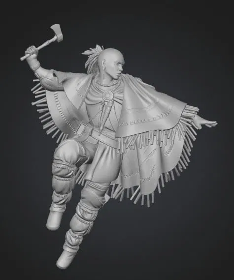 Nếu bạn là một người đam mê sưu tầm mô hình nhân vật lịch sử hoặc yêu thích phong cách văn hóa của các bộ tộc bản địa Bắc Mỹ, thì mẫu "Axe-Wielding Prairies Warrior" chắc chắn là một lựa chọn tuyệt vời không thể bỏ qua. Đây là một mô hình 3D được điêu khắc vô cùng chi tiết, thể hiện hình ảnh một chiến binh mạnh mẽ đang trong tư thế chiến đấu, tay cầm chiếc rìu tomahawk đặc trưng. Từng đường nét trên trang phục, từ chiếc áo choàng tua rua cho đến các phụ kiện trang sức trên cơ thể đều được tái hiện lại một cách sinh động, mang đến vẻ ngoài sống động và đầy khí chất cho nhân vật.
