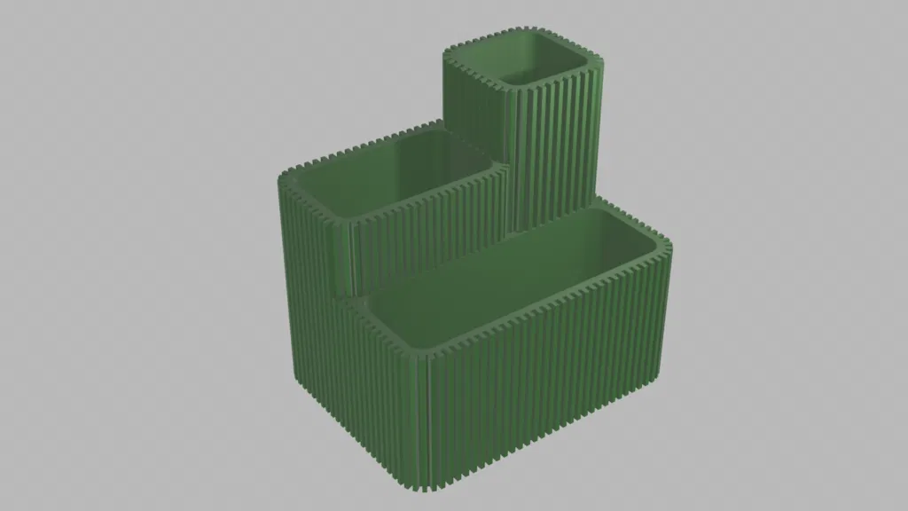 Mẫu chậu 3 tầng với các đường gân nổi kiến trúc đầy ấn tượng. Tận dụng linh hoạt làm chậu cây xếp tầng, bình hoa trang trí hoặc ống đựng đồ để bàn. Thiết kế tối ưu, in không cần support, mang lại vẻ ngoài sang trọng như gốm sứ cho không gian của bạn.