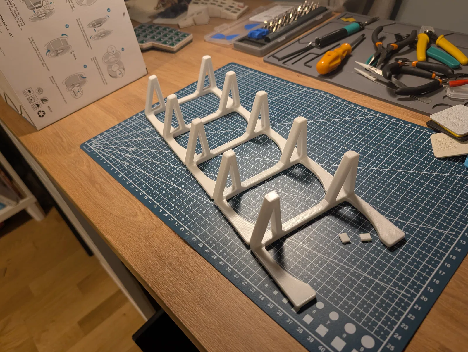 Mẫu này cũng tương tự như nhiều thiết kế khác nên không có gì quá đặc biệt. Mình chỉ muốn thử sức tự thiết kế và làm quen với các lệnh bo góc (fillets) và vát cạnh (chamfers). Mình đã chú ý bo tròn các góc nằm ngang so với bàn in và vát cạnh theo chiều ngược lại để giúp việc in ấn dễ dàng hơn.