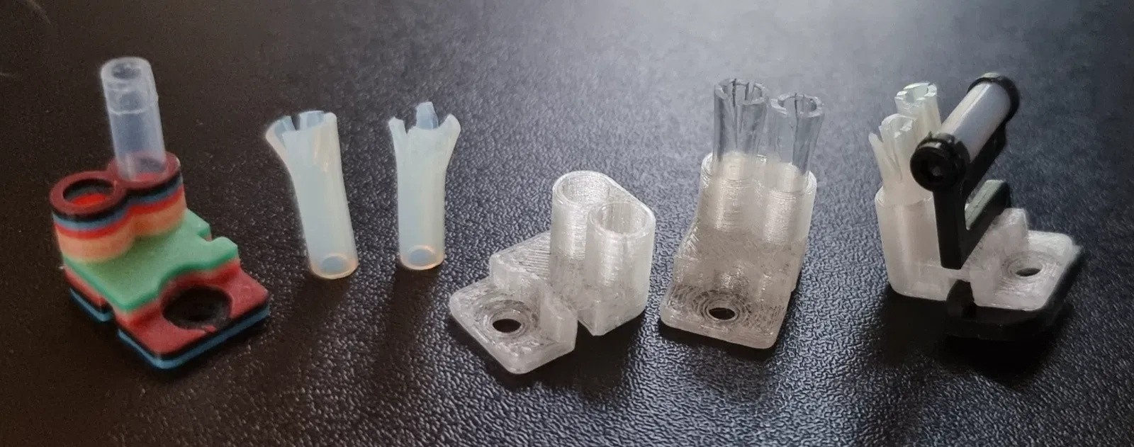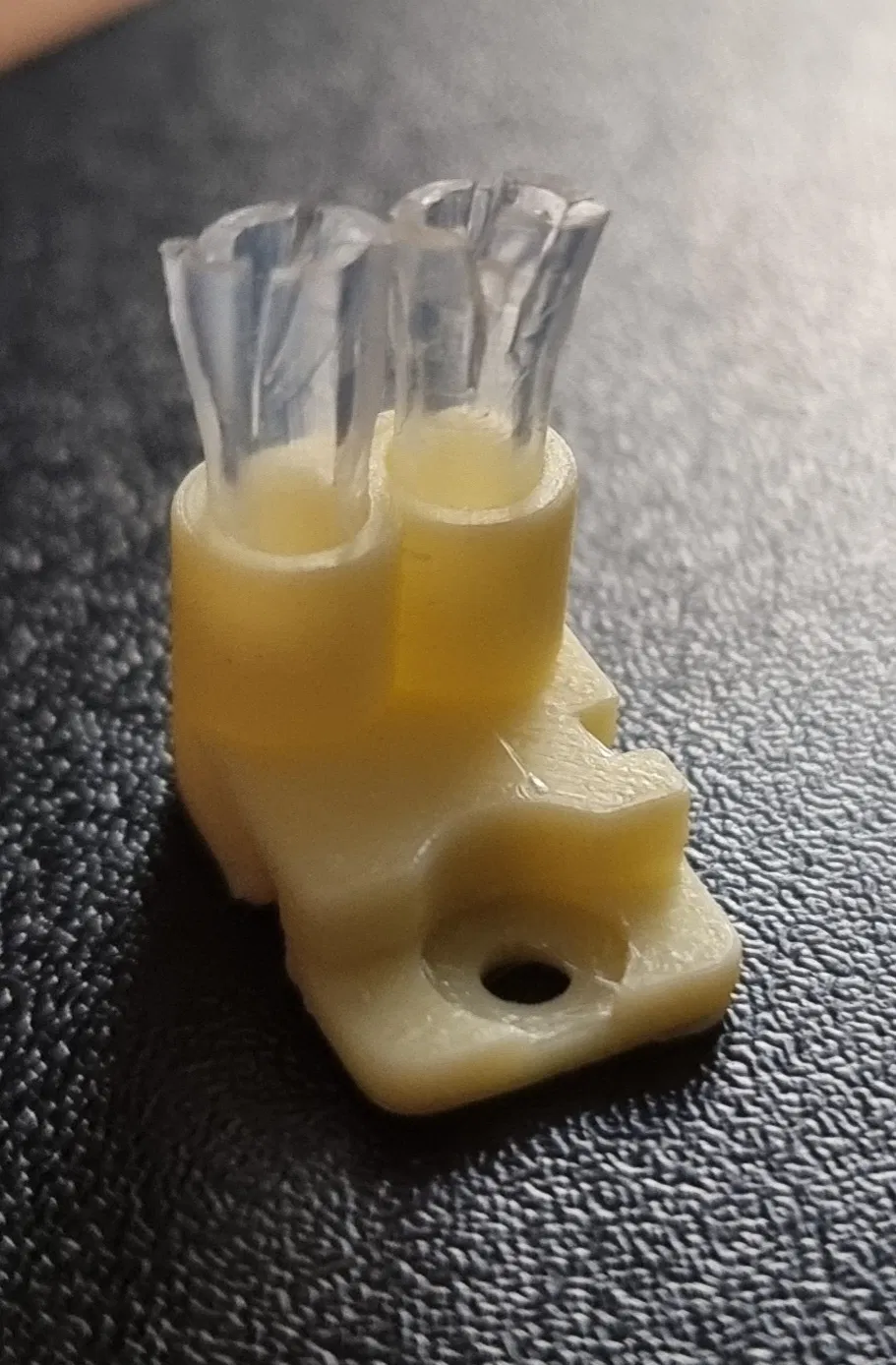 File in bao gồm 1 tấm với 5 biến thể. Do việc gắn ống PTFE cần độ khít nhất định, mà tùy thuộc vào cài đặt và loại nhựa in của mỗi người mà độ chính xác về kích thước sẽ khác nhau, dẫn đến lỗ cắm ống PTFE có thể bị lỏng hoặc chặt. Vì thời gian in các biến thể phụ không đáng kể, bạn cứ in hết ra để thử xem cái nào vừa vặn nhất nhé. Mình in hết chỉ mất khoảng 20 phút trên máy X1C thôi.
