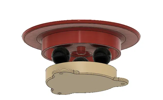 - Chèn ba viên bi vào các lỗ tròn trên đế. Chúng sẽ hoạt động như ổ bi cầu.
