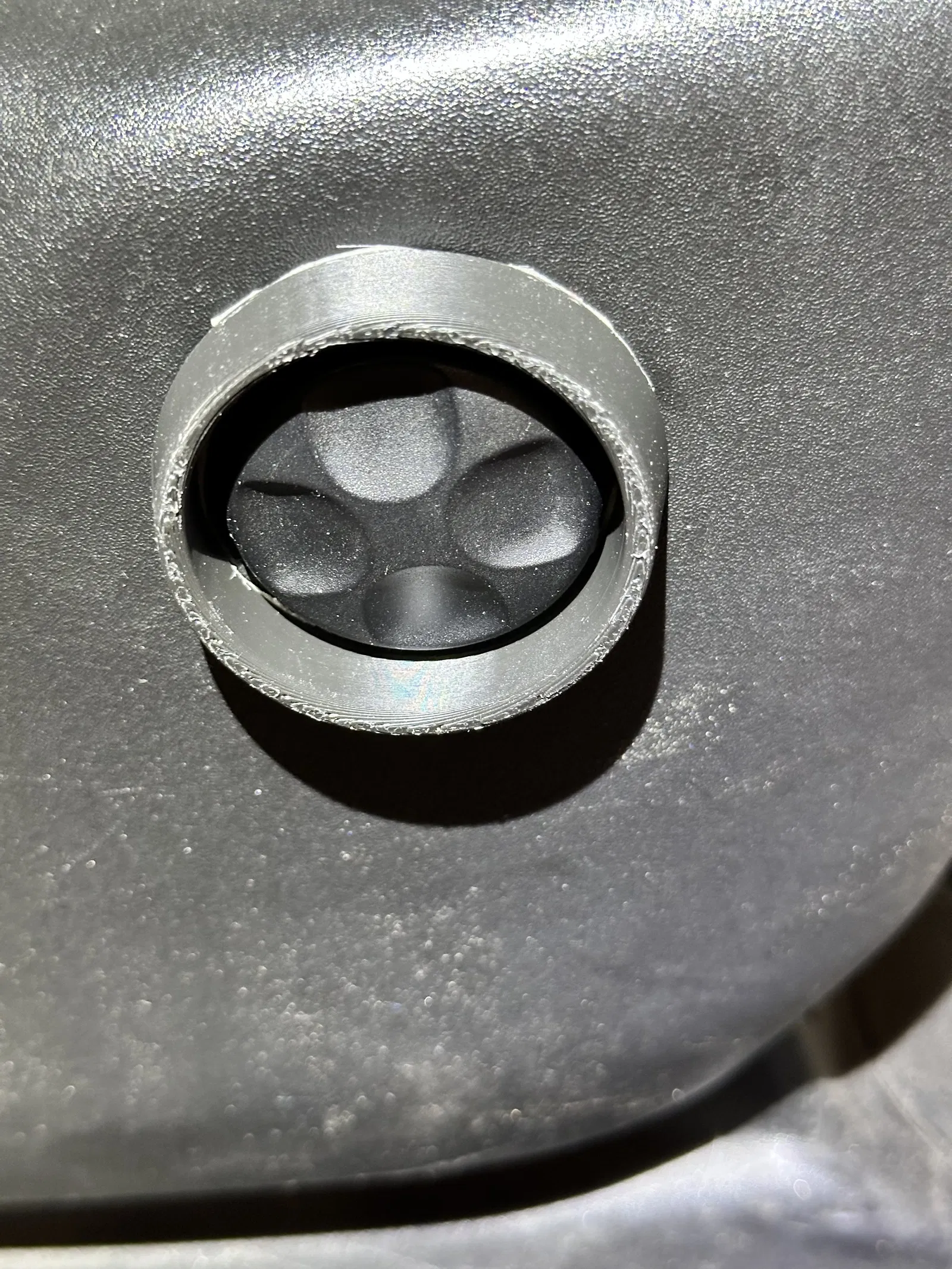 Tôi đã phải sử dụng tùy chọn "auto orient" trong phần mềm slicer để đặt mô hình nằm phẳng trên bàn in. Tôi dùng băng dính hai mặt để dán khung này quanh khu vực nút điều khiển, nhưng bạn cũng có thể dùng keo dán nếu cảm thấy chắc chắn.
