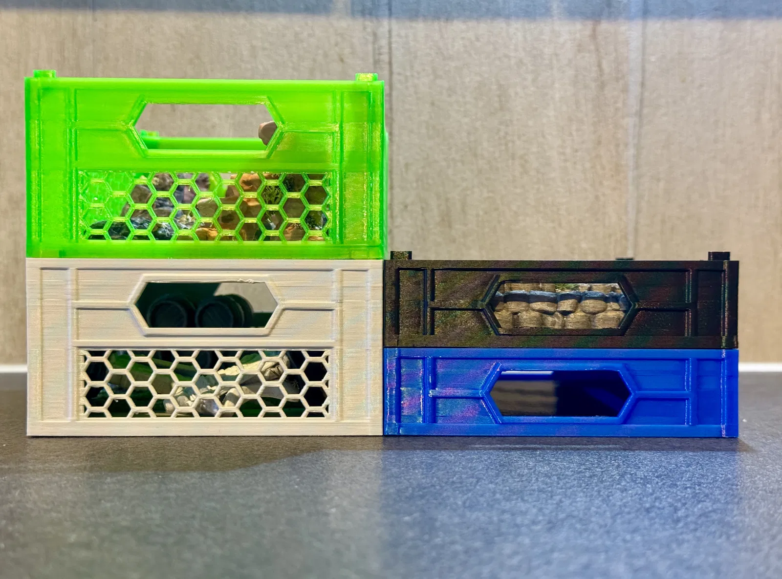 Mình cực kỳ thích các mẫu thùng xếp chồng của "Majrooo" để cất giữ đồ đạc, nhưng với những món đồ dẹt thì lại thấy hơi phí không gian, vì mẫu gốc chỉ có duy nhất một chiều cao cố định là 60 mm. Vì vậy, mình đã chỉnh sửa lại mẫu gốc để tạo ra phiên bản thùng có chiều cao bằng đúng một nửa. Mình vẫn giữ nguyên các chi tiết ở mặt trên và mặt dưới để đảm bảo thùng vẫn có thể xếp chồng và hoàn toàn tương thích với phiên bản gốc. Để biết hướng dẫn in chi tiết, bạn hãy xem qua mẫu gốc nhé. Đừng quên đăng "Make" nếu bạn đã in sản phẩm này nha. Chúc các bạn in ấn vui vẻ :)