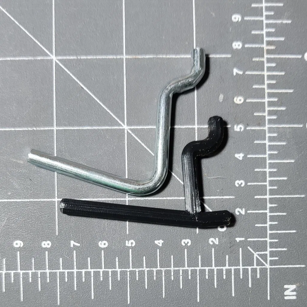 Móc treo cho bảng ghim tiêu chuẩn với khoảng cách 1 inch, lỗ khoảng 1/4 inch. Tôi làm hình lục giác để dễ in, kích thước 5.4mm. Móc đầu tiên dài 2 inch và nghiêng lên 10%. Có thể chịu tải 12.5lbs (khoảng 5.6kg) khi in bằng PLA với 3 lớp vỏ, 20% độ đặc.