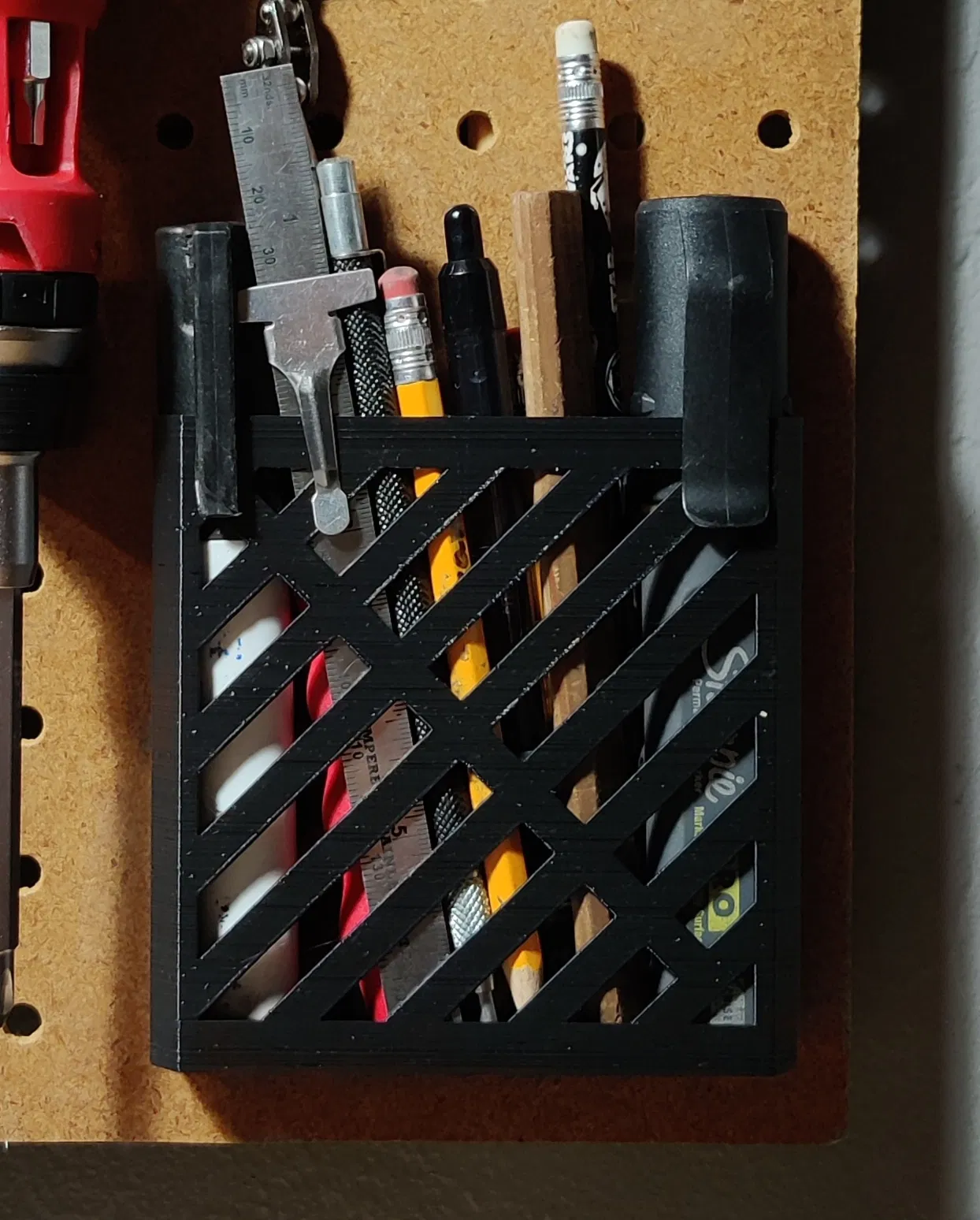 Đã thêm cốc đựng bút chì 4 "x 4", in ổn trên máy Prusa của tôi bằng PLA mà không cần hỗ trợ. Cần một chút xử lý hậu kỳ để treo tốt. Có và không có lỗ cắt để tiết kiệm vật liệu/chi phí.
