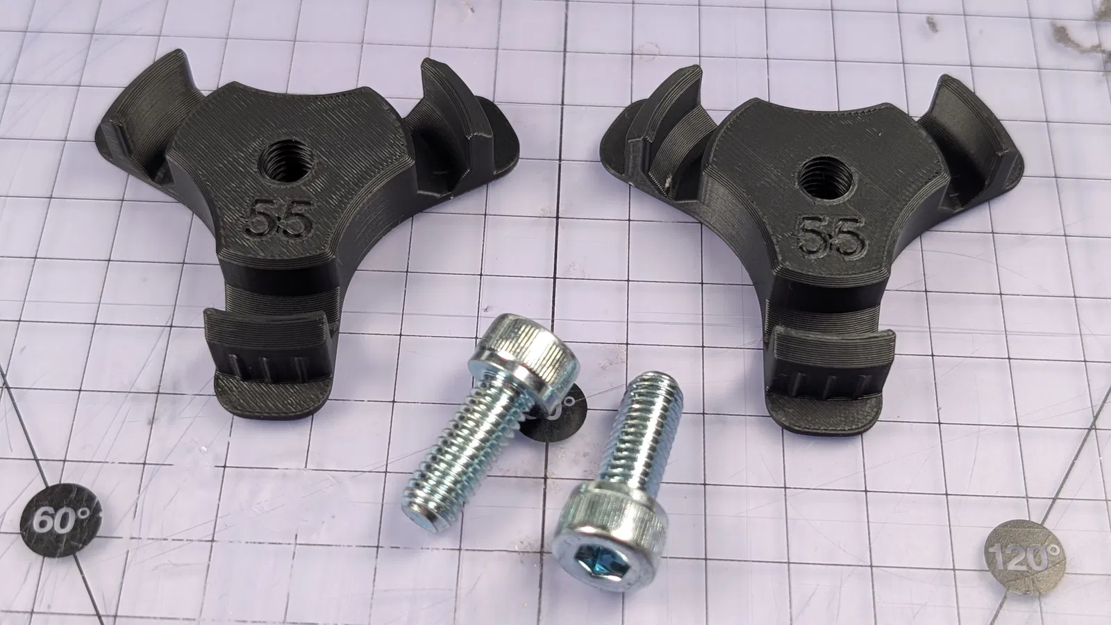 Spool hub tham số với ba chấu và lỗ trung tâm ren M8. Bất kỳ bu-lông M8*20mm nào cũng sẽ vừa với hub này và nhô ra đủ để gắn vào tâm của vòng bi 608. Tôi thường dùng các hộp đựng sợi nhựa của mình trên trục làm từ thanh thép không gỉ 8mm mài bóng, nhưng dùng bu-lông thì rẻ và dễ kiếm hơn nhiều. Các file STL bao gồm: 55mm: Dành cho cuộn nhựa tái sử dụng của Bambu và các loại SunLu đời mới. 54mm: Dành cho eSun, Jayo, DeepLee. 63mm: Dành cho cuộn nhựa tái sử dụng SunLu đời cũ. Hãy chắc chắn kiểm tra kích thước cuộn nhựa của bạn trước khi in nhé! Đôi khi nhà sản xuất sẽ thay đổi kích thước. Nếu bạn cần kích thước tùy chỉnh, file .f3d đã có sẵn tham số 'spool_ID'; bạn chỉ cần chỉnh sửa thông số đó, mọi thứ khác bao gồm cả phần văn bản dập chìm sẽ được tự động cập nhật.