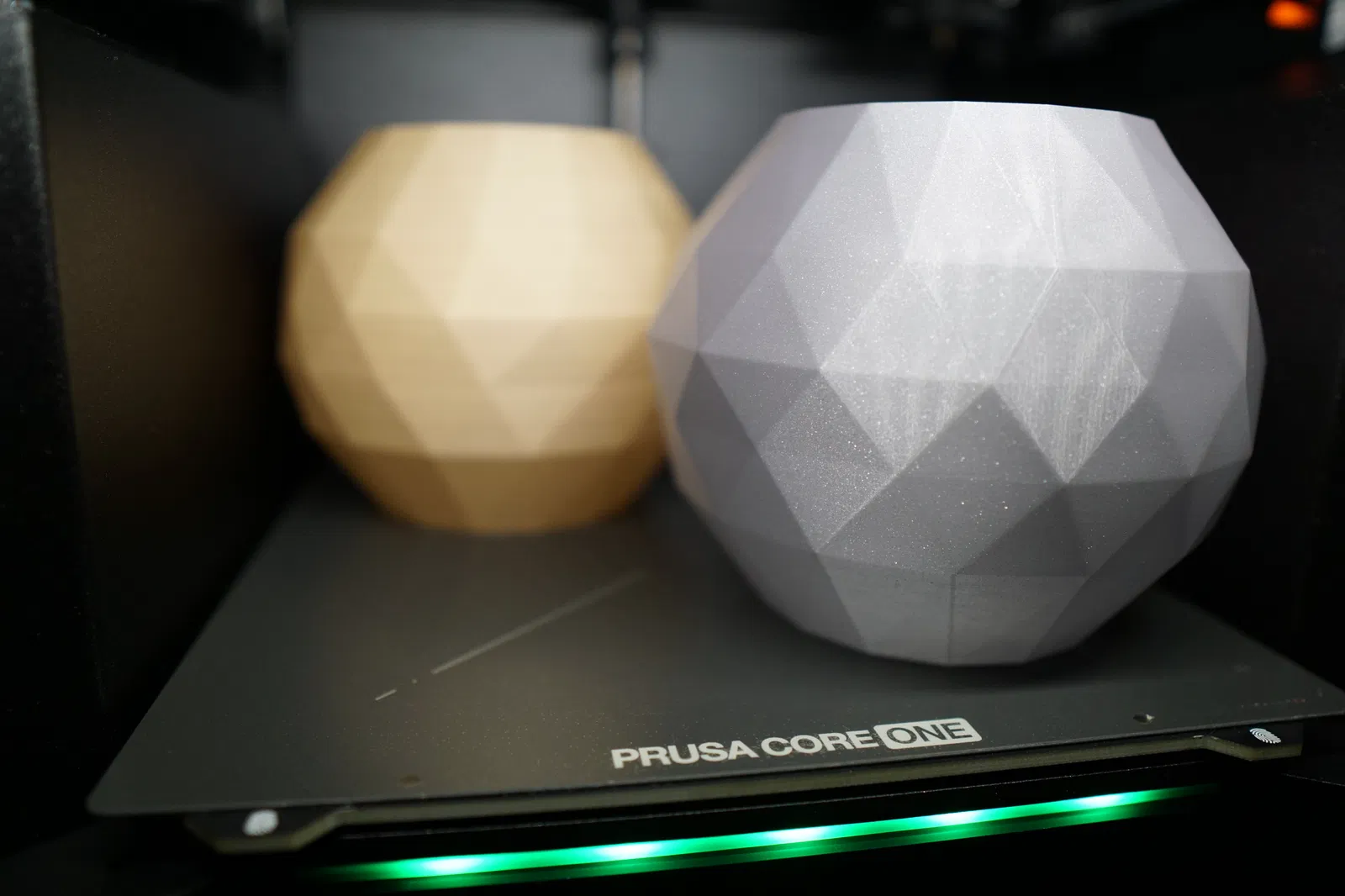 Loại nhựa sử dụng trong hình: Prusament galaxy silver và nhựa wood PLA thông thường (của hãng Eryone).